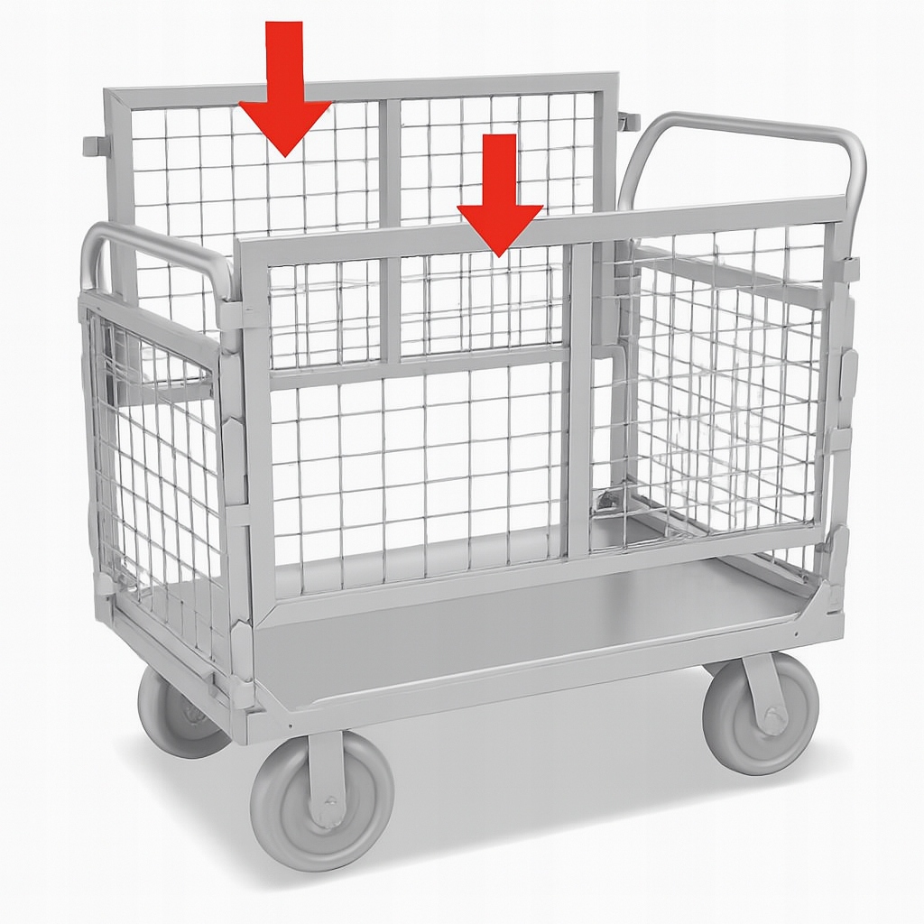 Міцний чотиристоронній транспортний візок з оцинкованої сталі, призначений для інтенсивного використання на складах, майстернях, виробничих цехах і точках логістики. Конструкція на основі міцної сталевої рами та сітчастих боків забезпечує чудову видимість і вентиляцію матеріалів, що транспортуються, одночасно захищаючи їх від падіння.