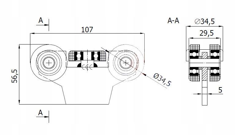 Міцно виготовлений візок для воріт та розсувних дверей, що забезпечує легке пересування та правильне функціонування дверей. Використання у виробництві матеріалів найвищої якості гарантує тривалий термін служби виробу та стабільність використання.