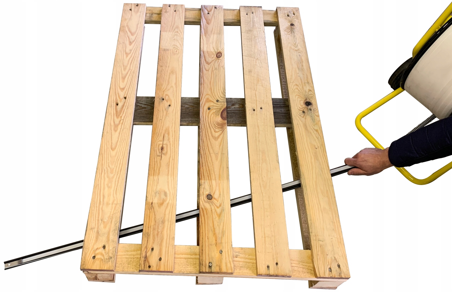 - Новинка!!! Розмотувач має пластикову стрічку для переміщення стрічки під палетою та вбудований контейнер для стрічки