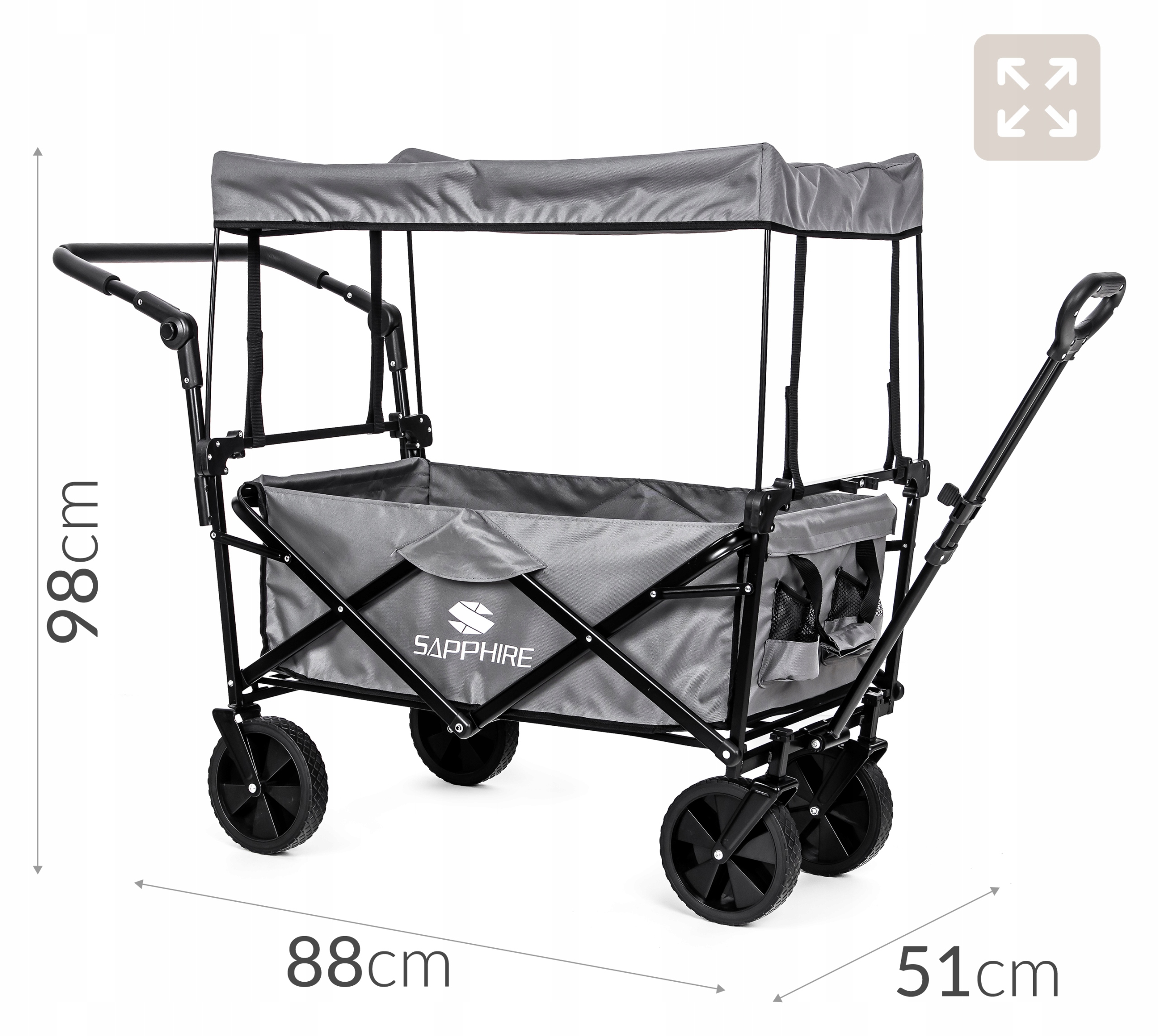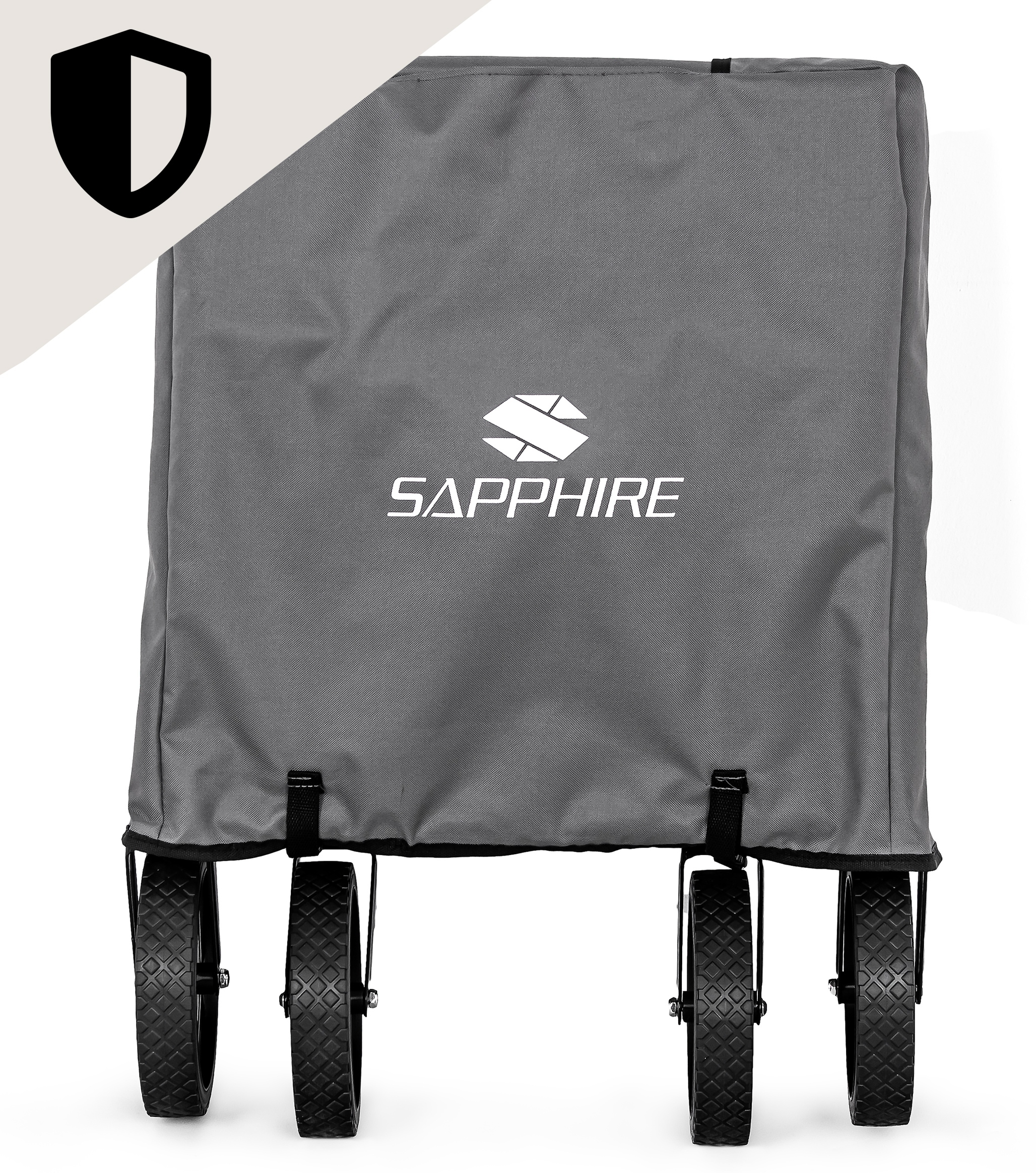 - Завдяки міцній металевій конструкції та використанню дуже міцного матеріалу, покритого водонепроникним поліестером 600D, коляска Sapphire має вантажопідйомність до 100 кг. Додатковою перевагою є посилене дно транспортної поверхні.
