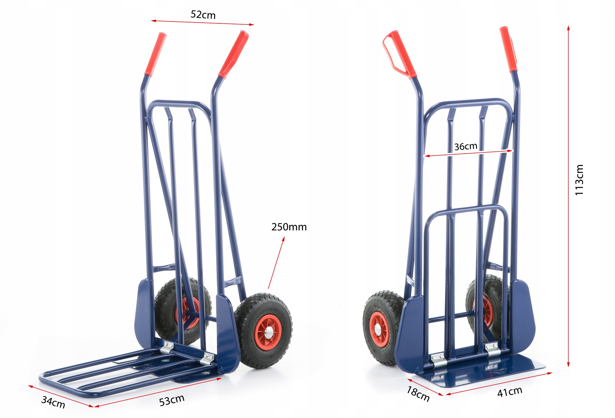 Дайте відпочити своїй спині - ми маємо для вас практичний універсальний транспортний візок із високоміцних сталевих профілів вагою до 280 кг. Однією з найбільших переваг коляски HIGHER є, крім фіксованої, складна платформа, яка значно збільшує вантажопідйомність. Коляска відрізняється простою конструкцією і високою міцністю. У колясці використовуються пневматичні колеса діаметром 250 мм, які ідеально підходять для будь-якої місцевості.