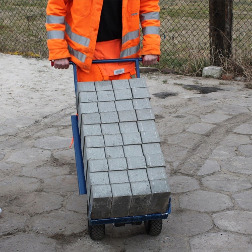 Візок для тротуарної плитки WB140 від Trak-bud - це інструмент, який використовується в індустрії асфальтування для полегшення та покращення роботи кожного працівника. Призначений для транспортування вертикальних шарів бруківки з піддону на робоче місце. Механічний затиск дозволяє одночасно транспортувати дві колони кубів Бехатон або дві-чотири колони кубів Голландії. Його використання дуже просте – завдяки малій вазі (24 кг) і маневреності він не втомлює працівника.