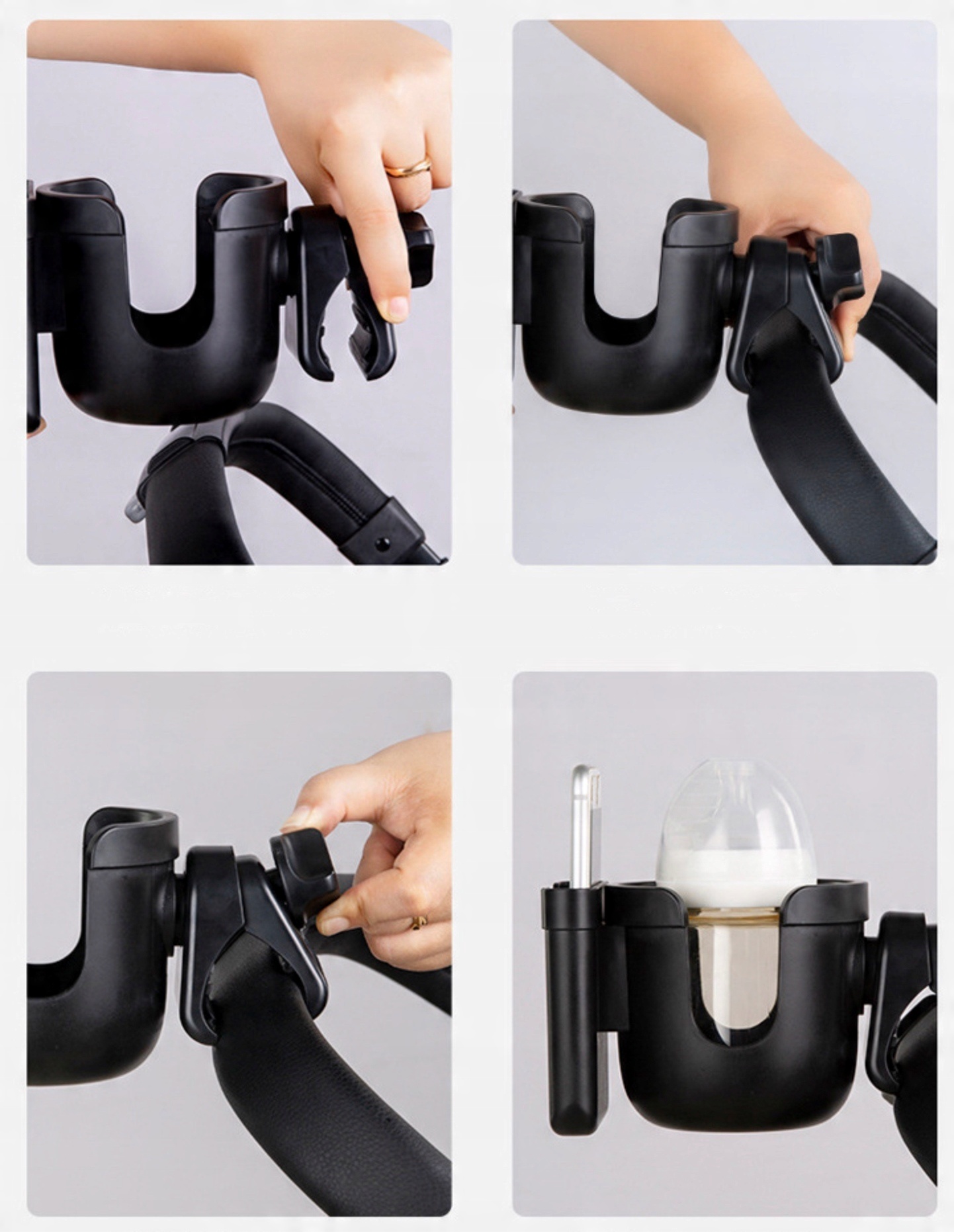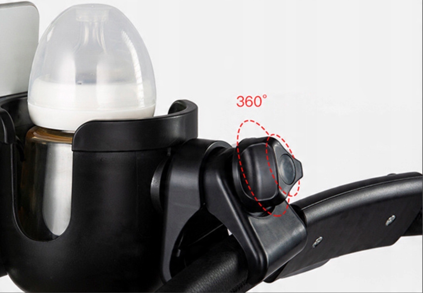 Зручний універсальний тримач для дитячої коляски для телефону та пляшечки для годування, напоїв у пляшках, термоса чи чашки для кави та інших гарячих та холодних напоїв.