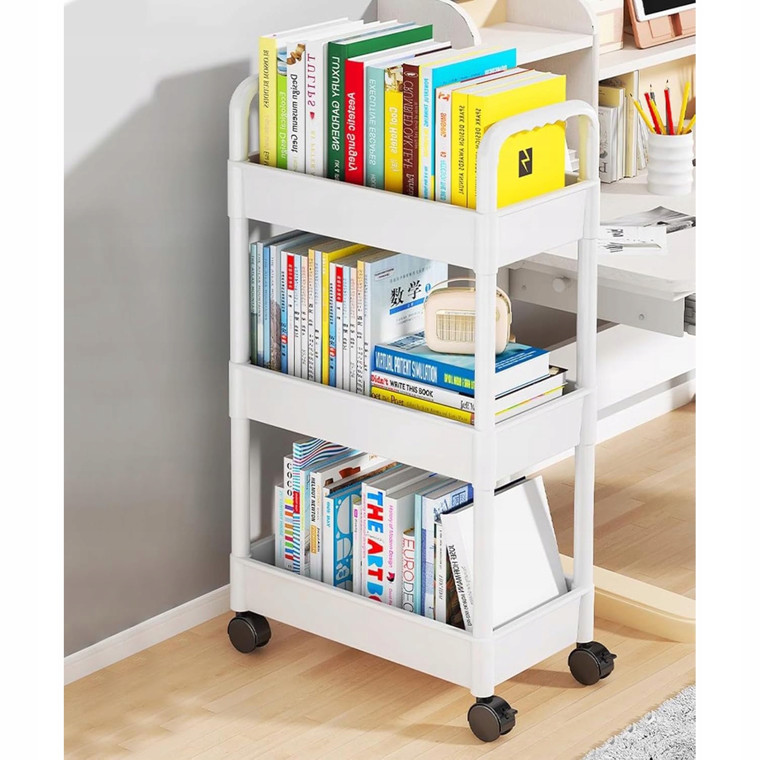 💖💖💖 Багатофункціональне зберігання: Цю коляску можна розмістити на кухні, спальні, вітальні, ванній кімнаті, офісі та інших місцях. Ви можете зберігати щоденні потреби, закуски, косметику, книги та інші предмети. Подбайте про чистоту вдома і продовжуйте не турбуватися про втрату речей.
