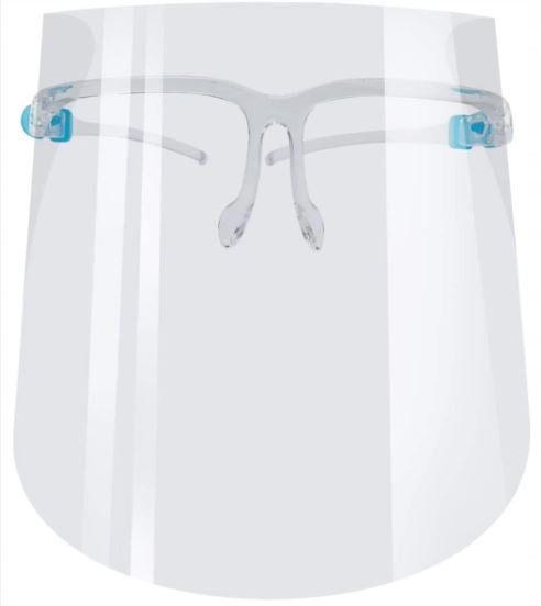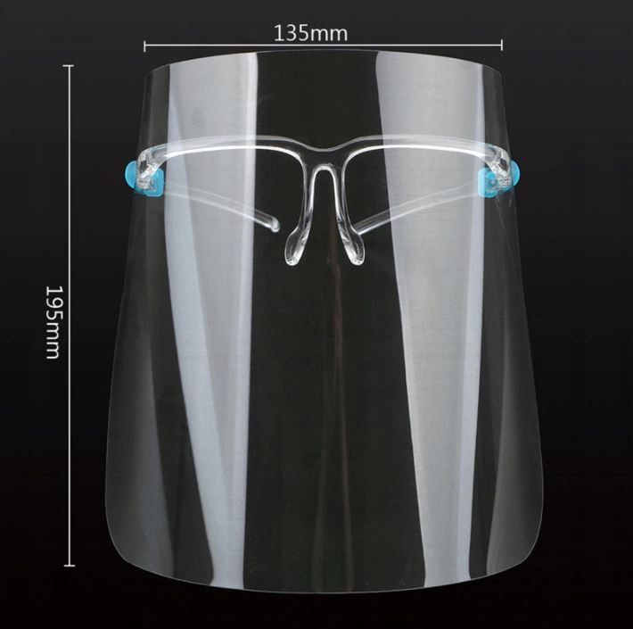 Маска складається зі зручних оправ і знімного прозорого екрану, який закриває очі та обличчя.