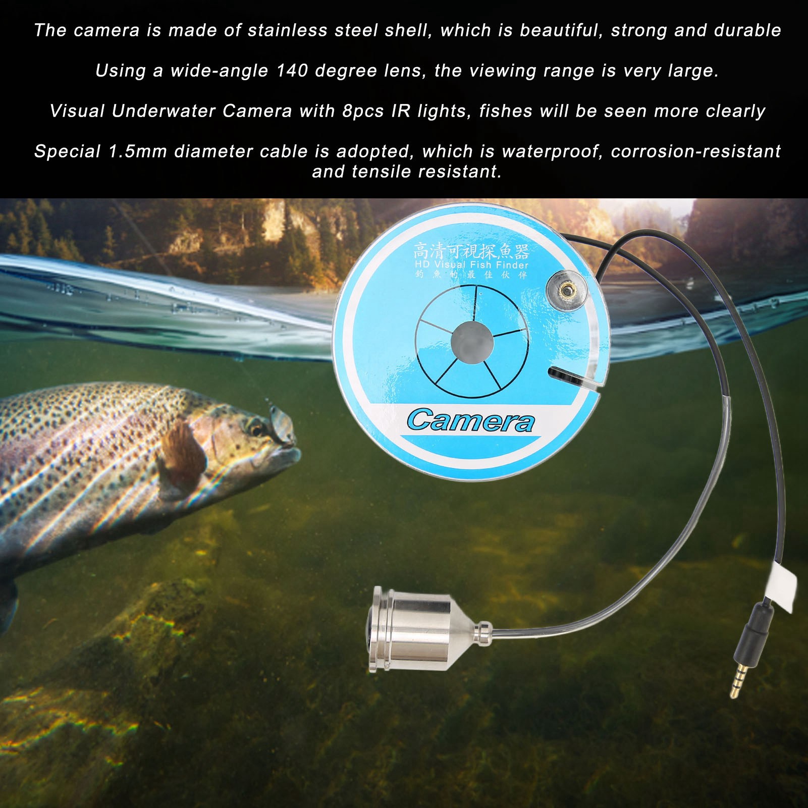 5. Міцний матеріал: використовується спеціальний трос діаметром 1,5 мм, який є водонепроникним, стійким до корозії та розтягування. Камера виготовлена з корпусу з нержавіючої сталі, яка є красивою, міцною та довговічною