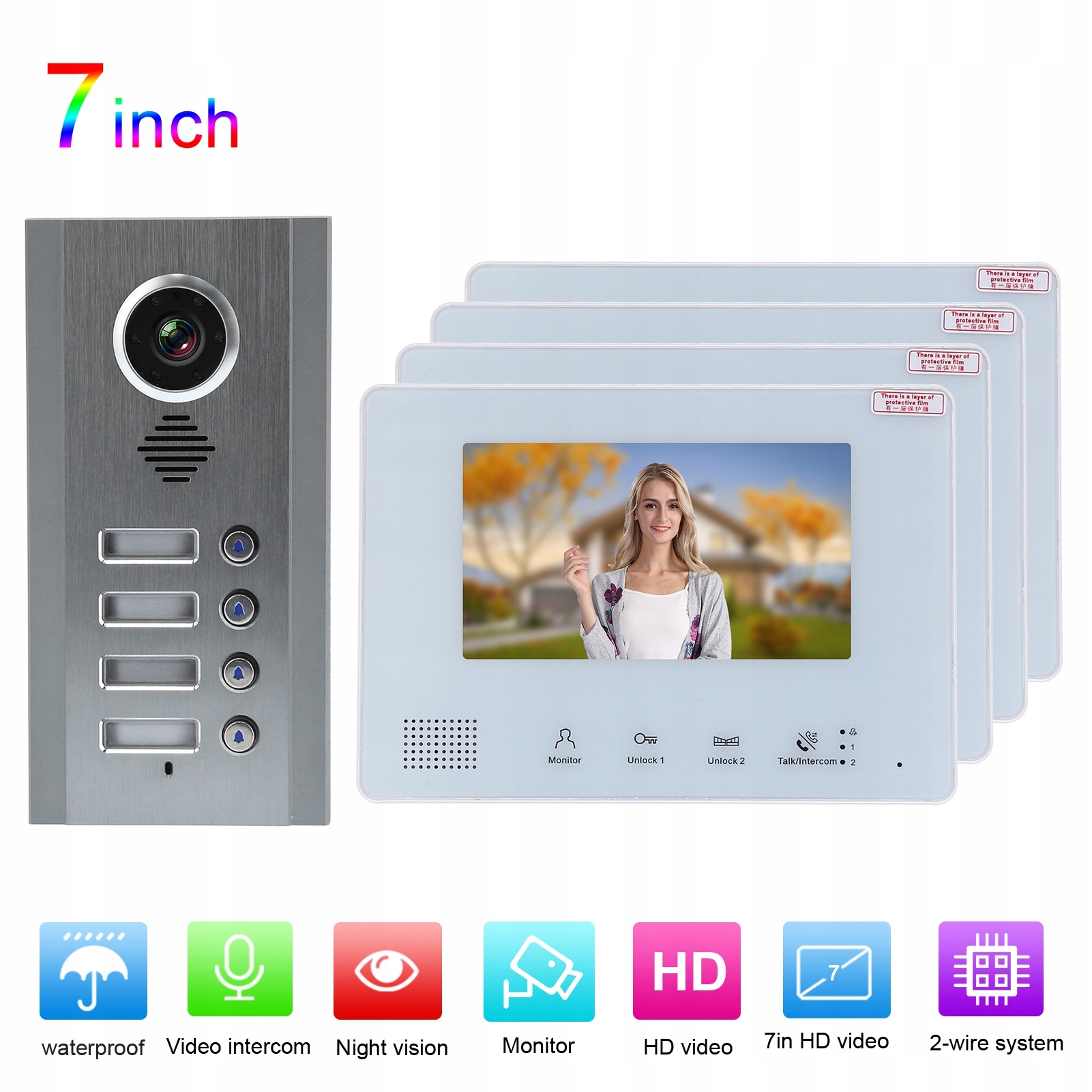 Візуальний домофон 7-дюймовий 2-провідний домофонний дзвінок 19 ст