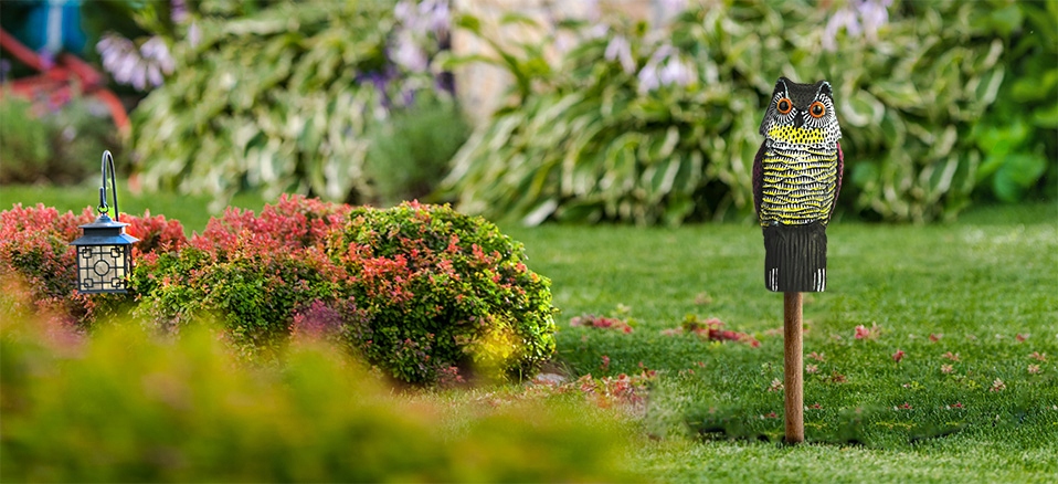 Ефективний відлякувач птахів - манекен сови з рухомою головою