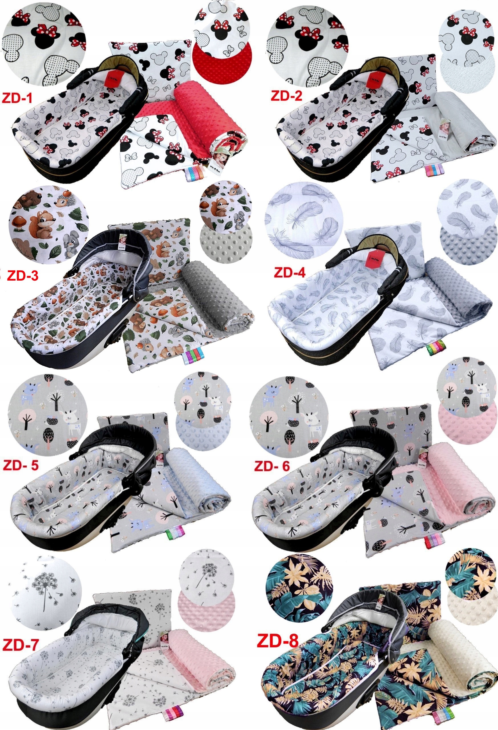 Ковдра та подушка двосторонні. З одного боку бавовняна тканина (за винятком стьобаного зірочками - поліестер), а з іншого дуже приємна і тепла на дотик тканина VELVET з цегляним переплетенням або тканина MINKY з тисненням бульбашок або гладка тканина MINKY. Всередині грілка для одягу щільністю 120г/м2 - ковдра і подушка 400г/м2