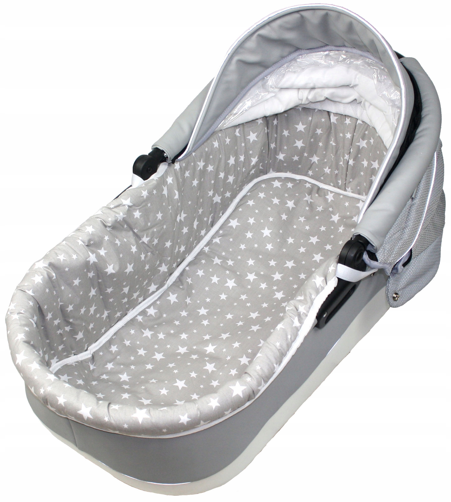 Завдяки еластичним стрічкам вкладиш тягнеться і підходить для будь-якої гондоли, не може бути встановлений в гондоли з капюшоном на блискавці