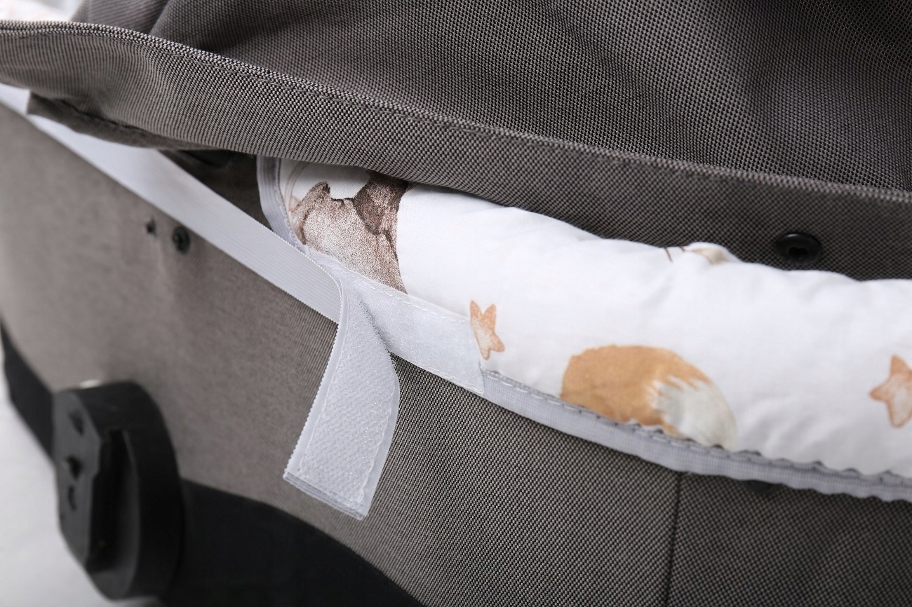 дозволяють ідеально адаптувати вкладиш до вашої коляски. Закріпіть вставку легко і надійно, отримуючи елегантний стиль без зав'язок, бантів і жорстких елементів.