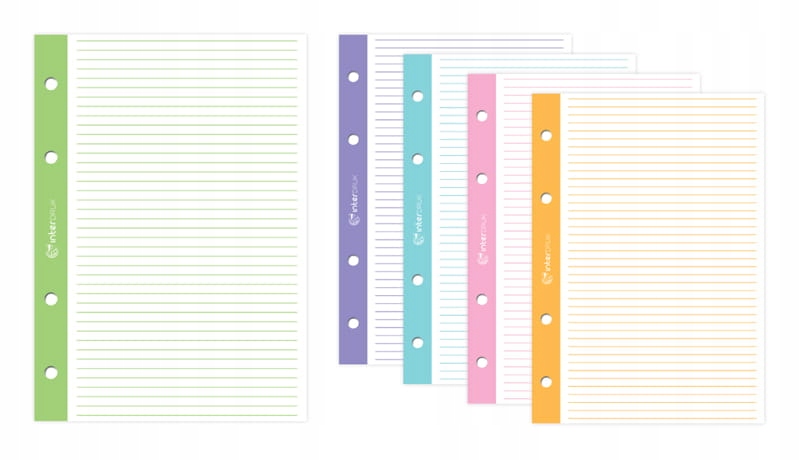 - Формат А5, ідеально підходить для стандартних швидкозшивачів такого розміру - 50 аркушів, багато місця для запису важливої інформації для приміток - Кольорова лінія на кожному аркуші, що полегшує сортування документів - Поле на кожному аркуші, що дозволяє робити примітки та анотації