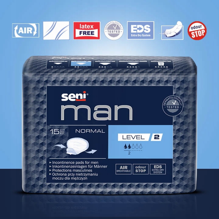 Якщо у вас іноді витікає невелика кількість сечі під час фізичних вправ, сміху, чхання або кашлю, використовуйте чоловічі чоловічі прокладки від нетримання Seni Man Normal 2 рівня.