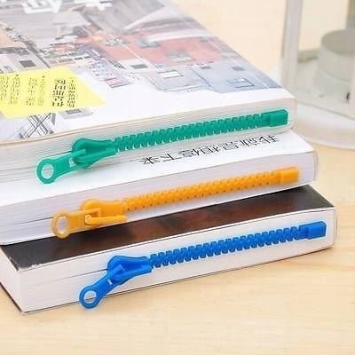 Надзвичайна закладка (чи, можливо, її можна розширити?). Чудовий дизайн із практичним використанням. У книжці виглядає так, ніби закривається на блискавку. Але не хвилюйтеся, це лише ілюзія, закладка позначає кінець читання та відділяє сторінки одна від одної, як будь-яка класична закладка.