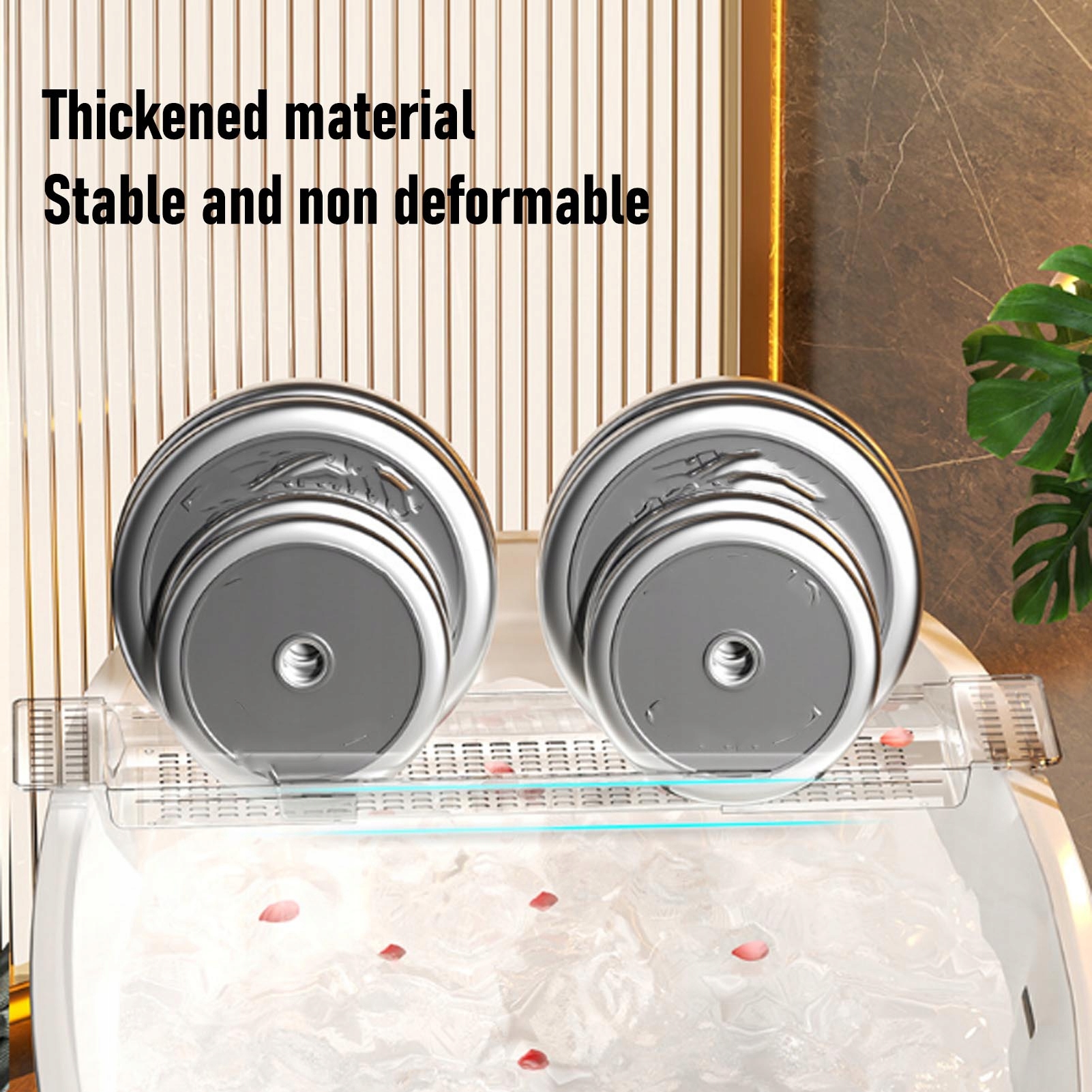 2. Конструкція з не -ковзанкою ручкою: ця ванна має ручки з не -ковзанням силікону з обох боків, які запобігають ковзанню та ковзанню, забезпечуючи стабільне зберігання. Ця конструкція дозволяє безпечно розміщувати душовий піднос на ванні, не дряпаючи його зовнішній вигляд.