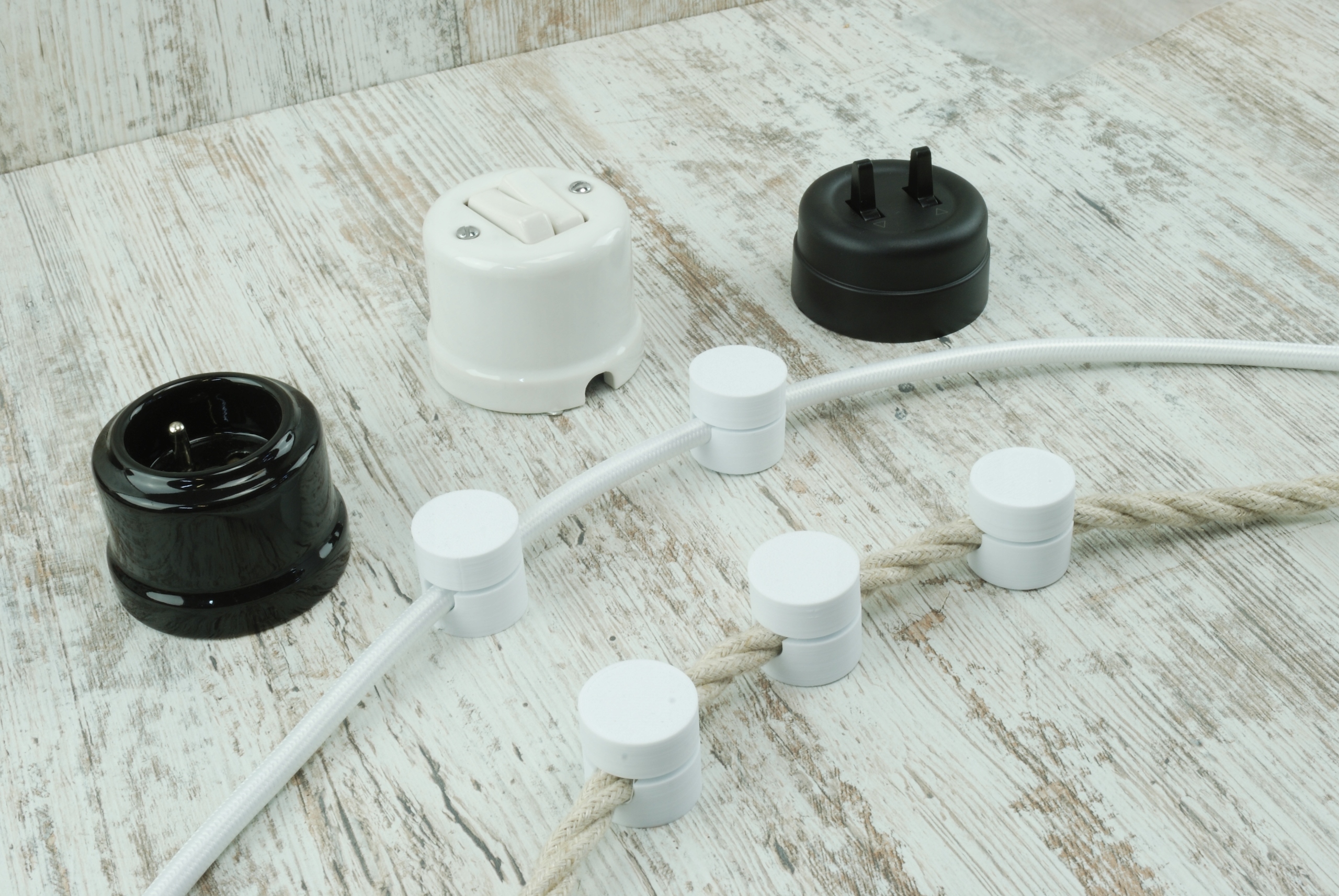 Власник кабелю білого кабелю в 3x1.5 3x2.5 плетена ручка горища 7-10 м.