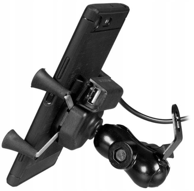 Універсальна модель ручки мотоцикла L з можливістю зарядки через порт USB. Подвійний кульковий суглоб дозволяє встановити положення пристрою відповідно до його уподобань, як у випадку ручок з гнучким бумом. 360 градусів обертання. Можливість встановлення як під дзеркалом, так і іншим гвинтом на кермі, і на кермі.