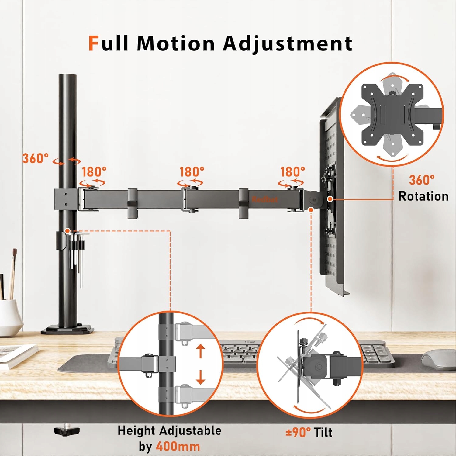 • Довга, 420 мм моніторна рама з розмірами завдовжки 352 мм та 296 мм, ідеально підходить для ноутбуків до 16 дюймів.