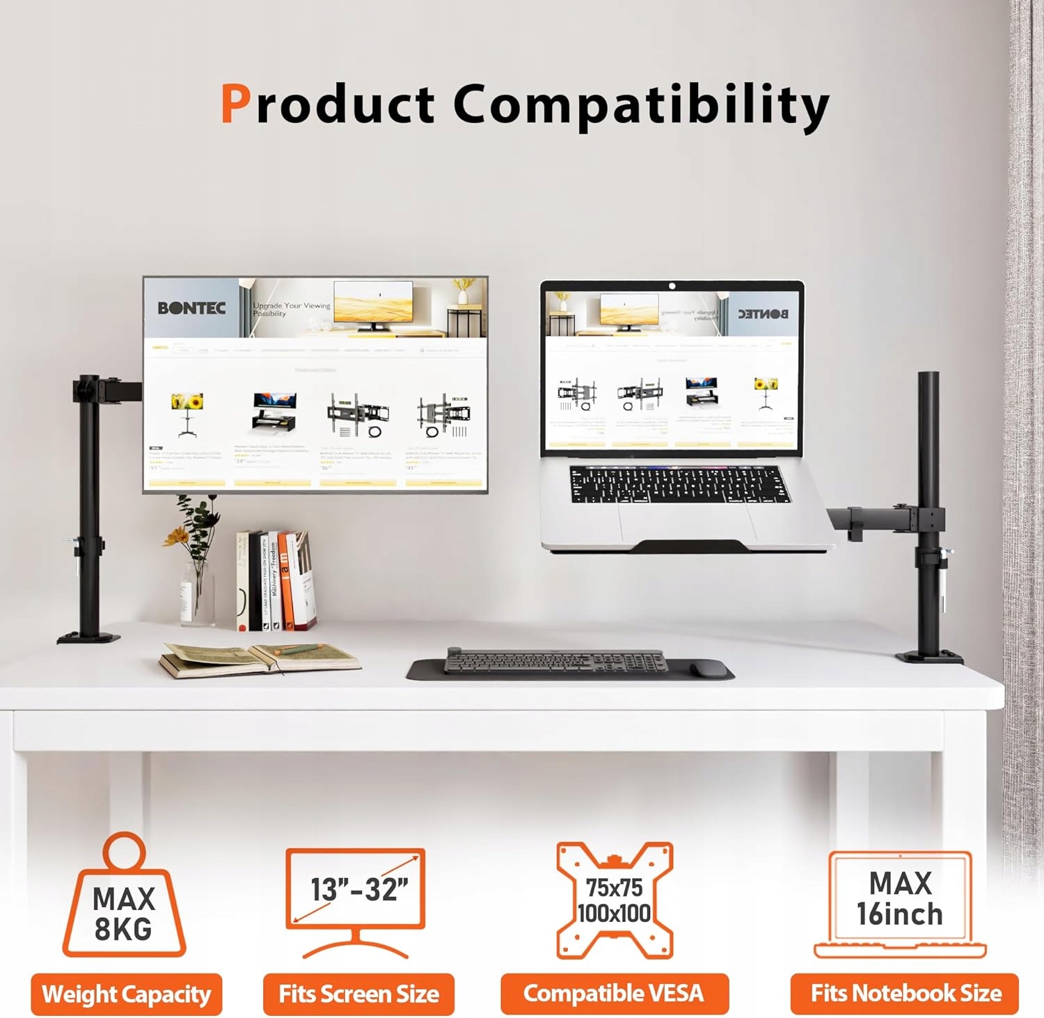Власник монітора з ноутбуком - це ідеальне рішення для людей, які хочуть покращити ергономіку свого робочого простору. Завдяки можливості повного регулювання та твердої конструкції, продукт забезпечує комфорт та здоров'я під час роботи за комп’ютером.