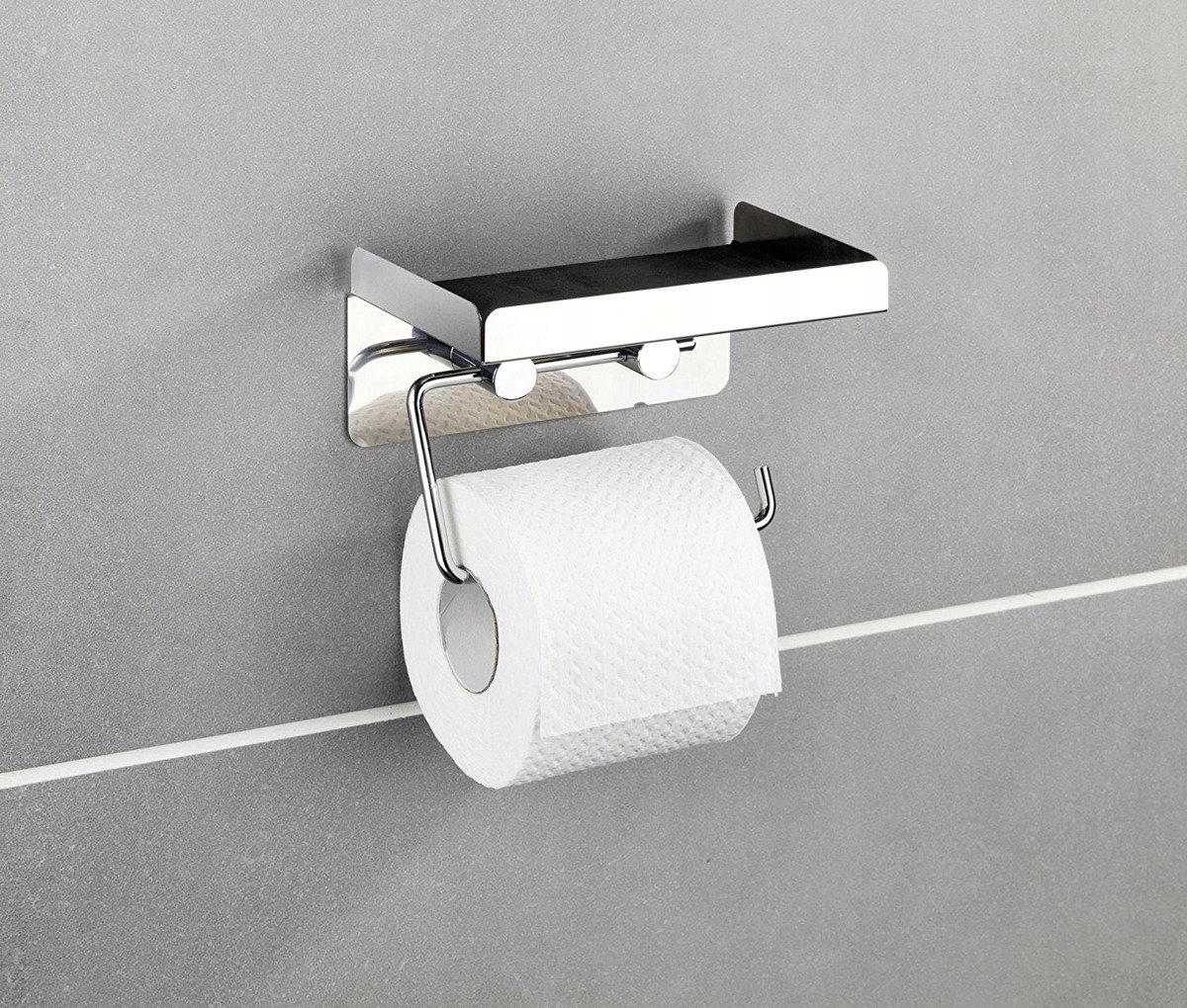 Відкрийте власник туалетного паперу з практичною полицею для зберігання контейнера для вологи. Додаткове місце також чудово підходить для відкладення інших предметів - книг, клітин, планшетного ПК тощо з високої якості, блискучої нержавіючої сталі. Полиця оснащена non -slip покриттям . Установка за допомогою самозадійних прокладок не потребує використання інструментів або буріння. Елегантний дизайн ідеально підходить для кожної ванної кімнати.
