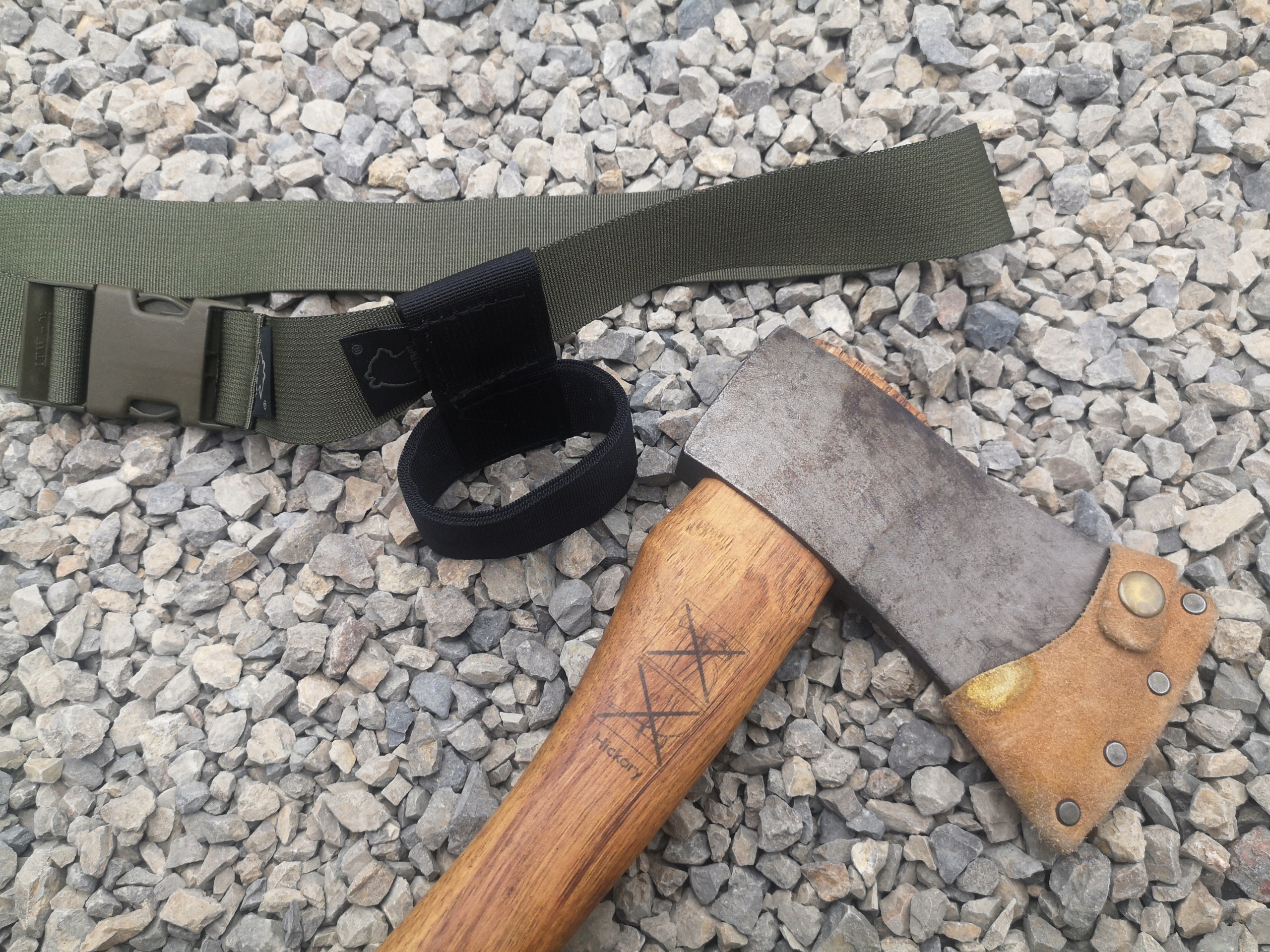 Ручка Siekierka - це корисний елемент обладнання під час табірних робіт або під час підготовки деревини до палива. Завдяки цьому, у нас завжди є інструмент, і нам не потрібно ставити його на землю, де він може легко загубитися. Сигна петля стрічки має потрібний діаметр, завдяки якому ковзання вала зручна, але непотрібної слабкості немає. 40 -мм шириною кріплення забезпечує зручне кріплення та видалення з пояса. Вся виготовлена з поліамідної стрічки гарантує надійність роками.