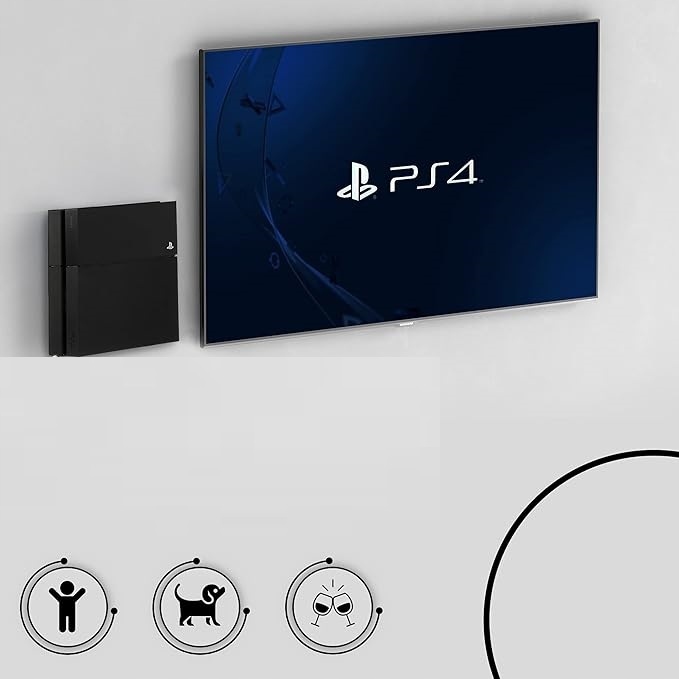 - Легка установка: Ви зможете швидко і легко встановити цю стінову ручку, містить гвинти для сухих стін, якорів та гвинтів VESA. Після встановлення ручки просто просуньте пристрій PS4 в ручку