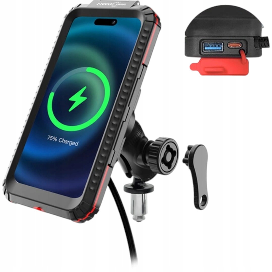 ✅ хитра ручка мотоциклів із індукційною зарядкою та портами USB/USB-C-це чудове рішення для людей, які цінують комфорт, безпеку та функціональність. Завдяки тісному, водонепроникному випадку ваш телефон буде захищений від дощу, пилу та грязі, навіть у складних умовах. Дизайн, яка поглинає вібрації, та магнітний інтер'єр корпусу гарантує стабільність пристрою під час руху, а спеціальне вікно ззаду дозволяє записувати маршрут, не покриваючи камеру. Завдяки кульовому суглобі та поворотній головці ви можете відрегулювати налаштування телефону до своїх потреб - у вертикалі, рівні або під кутом. Корпус можна легко відірвати і взяти з собою, а ручка прикріплена до голови керма.