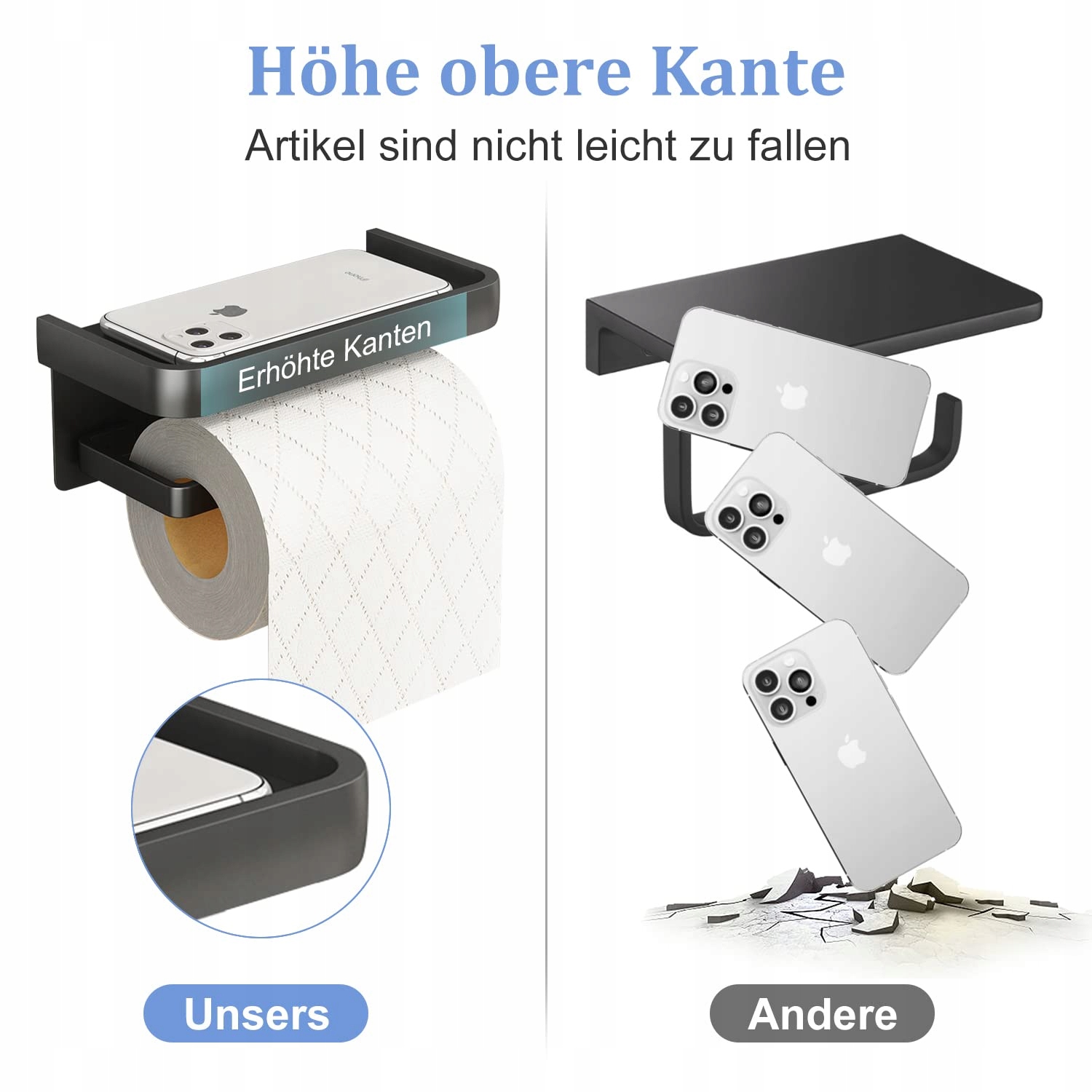 4[Одна ручка подвійного використання] Власник туалетного паперу підключений до ручки та полиці для зберігання туалетного паперу, не тільки може вмістити рулони туалету, але й розмістити невеликі предмети, такі як клавіші для мобільного телефону, годинники, окуляри, пляшки. тощо