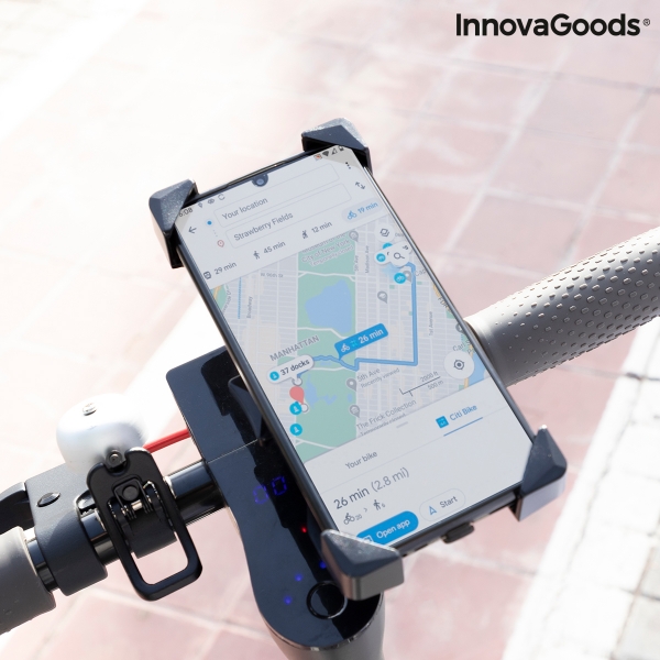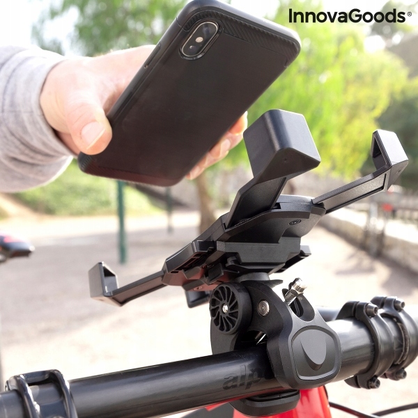 Автоматичний тримач смартфонів для легкого кріплення до всіх видів велосипеда, мотоцикла, руху скутерів тощо. Ручка має знімний затискач, який розміщується на кермі, затягуючи різьбову ручку, щоб ідеально підходити. Він забезпечує певний, вібраційний зчеплення, а його багатопозиційний оборот при 360 ° дозволяє налаштувати вертикально або рівень, щоб отримати оптимальний кут перегляду та зручний перегляд вмісту. Ця універсальна, саморегулююча рульова ручка підходить для всіх типів мобільних телефонів. Завдяки системі автоматичного регулювання, ви можете легко та зручно адаптувати її до розміру кожного смартфона. Він має два бічні затискачі на джерелах, чиї одночасно натискання викликає кінцеві руки. Після вставки смартфона вмикається центральна кнопка автоматичного закриття, що призводить до іммобілізації телефону. Для того, щоб витягнути смартфон, однакову дію слід виконувати, натиснувши обидві бічні затискачі на пружинах, які відкриють руки, що тримають телефон. Дизайн ручки стійкий до дощу та потрясінь, що забезпечує стабільність та безпеку використання, що дозволяє використовувати його на нерівних дорогах та доріжках. Завдяки своїм універсальним додаткам це ідеальний продукт для занять спортом, їздою на велосипеді, мотоциклах, скутері тощо. Він може бути використаний у снігу, в горах, у сільській місцевості, в місті тощо.