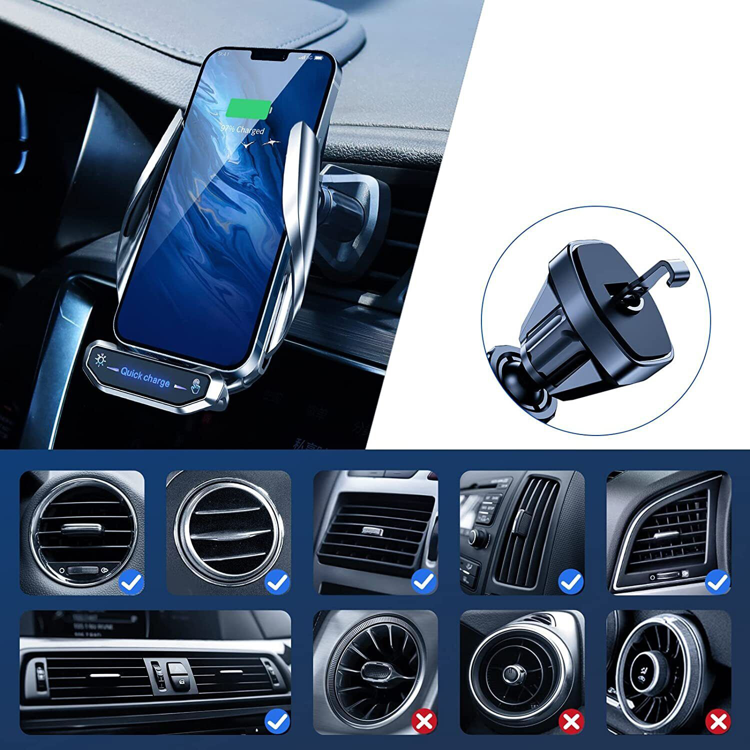 - бездротова швидка зарядка: цей власник зарядного пристрою забезпечує пряму магнітну зарядку та швидку бездротову зарядку, портативну та зручну. Водіння.