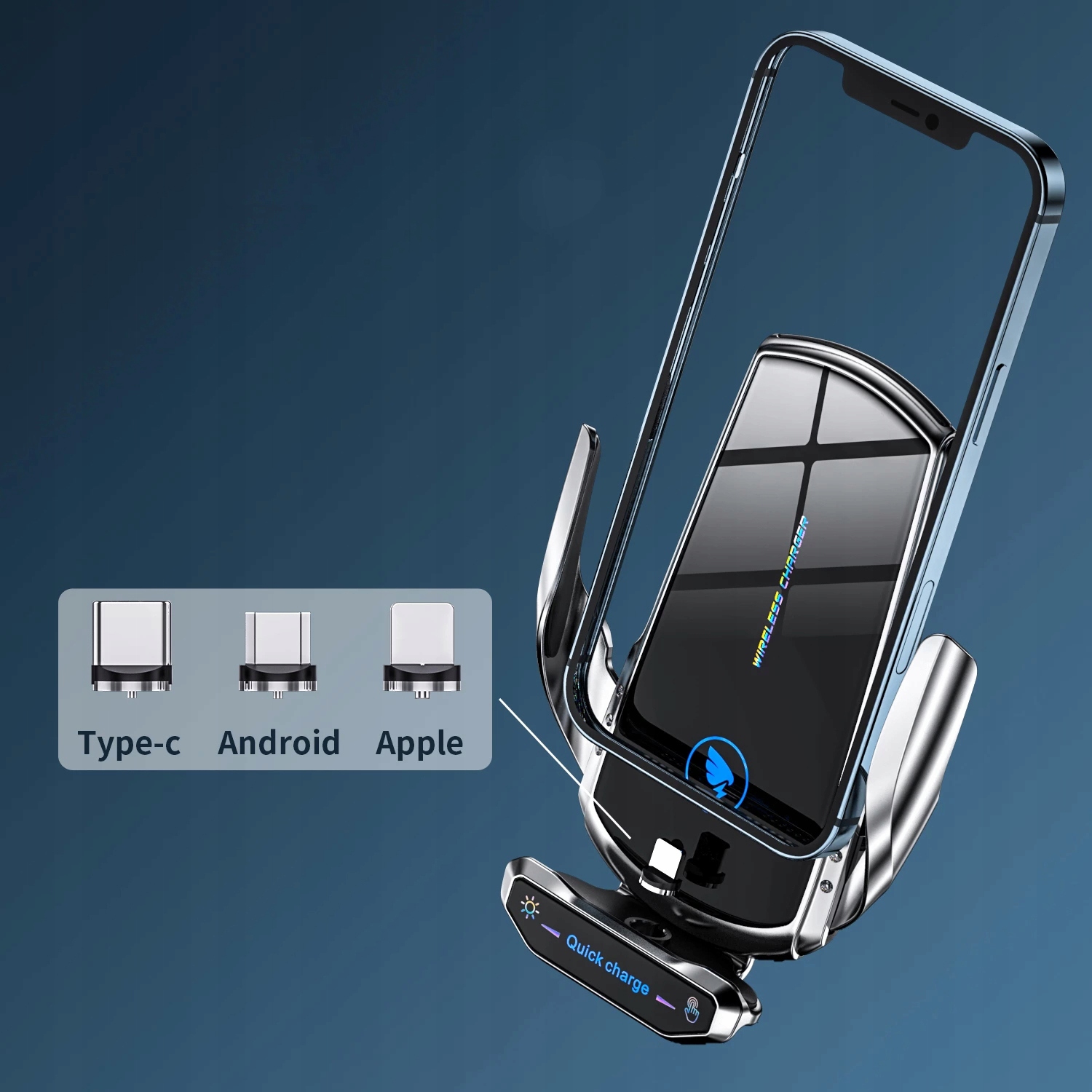 Зарядник бездротового автомобіля інтелектуально розпізнає та заряджає пристрій на великій швидкості. Сумісний з усіма мобільними телефонами (Примітка: магнітна головка (iPhone, тип C, Android)).