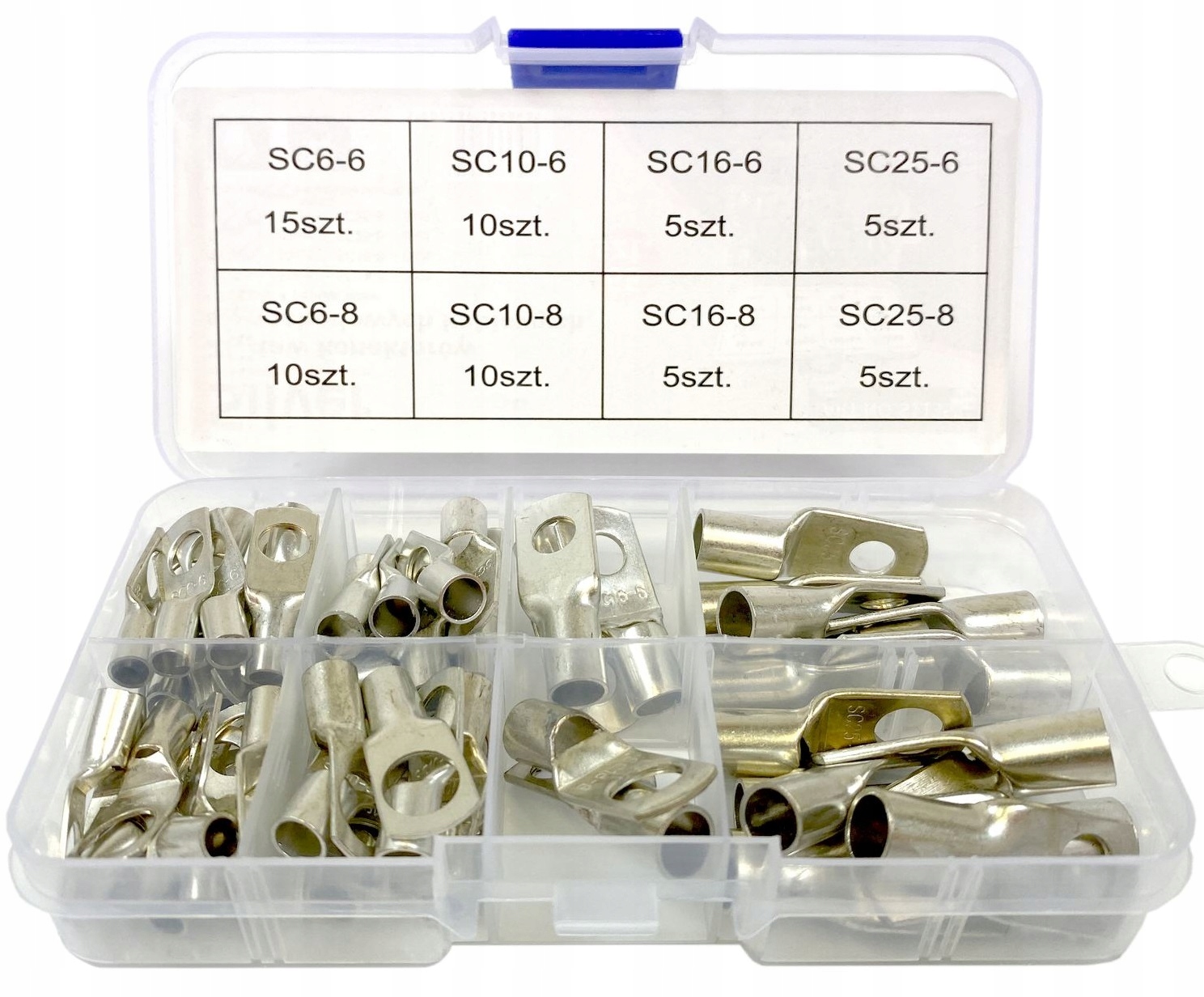 Трубчасті кабельні наконечники 65 ПК. В: Автомобілі пасажирів, вантажівки, фургони, сільськогосподарські та будівельні машини та де -небудь використовуються з'єднання проводів з подальшими елементами встановлення, наприклад, гвинт. можливі розриви з'єднання. ММ 10 ПК.