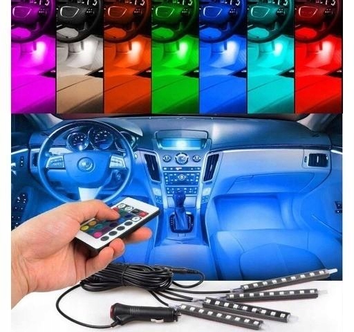 Комплект світлодіодного освітлення RGB для використання в салоні автомобіля. Неймовірна легкість монтажу завдяки використанню самоклеючих світлодіодних стрічок на двосторонньому скотчі 3M. Покриття смужок силіконовим покриттям робить їх водонепроникними! Смужки можна встановити будь-де в автомобілі завдяки використанню довгих кабелів між стрічками.