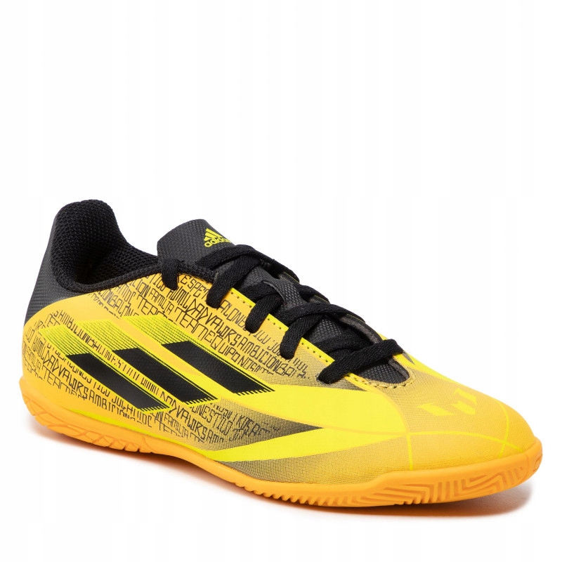 Взуття Adidas X Speedflow.4 IN представлені унікальною концепцією, у якій домінує жовтий відтінок.