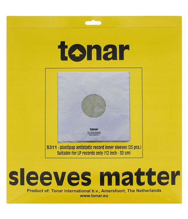 Внутрішні конверти Plastipap виготовлені з суперантистатичного паперу та додатково посилені внутрішньою антистатичною фольгою, завдяки чому конверти бренду Tonar не лише гарантують нам антистатичний, але й захист від пилу вінілових платівок.