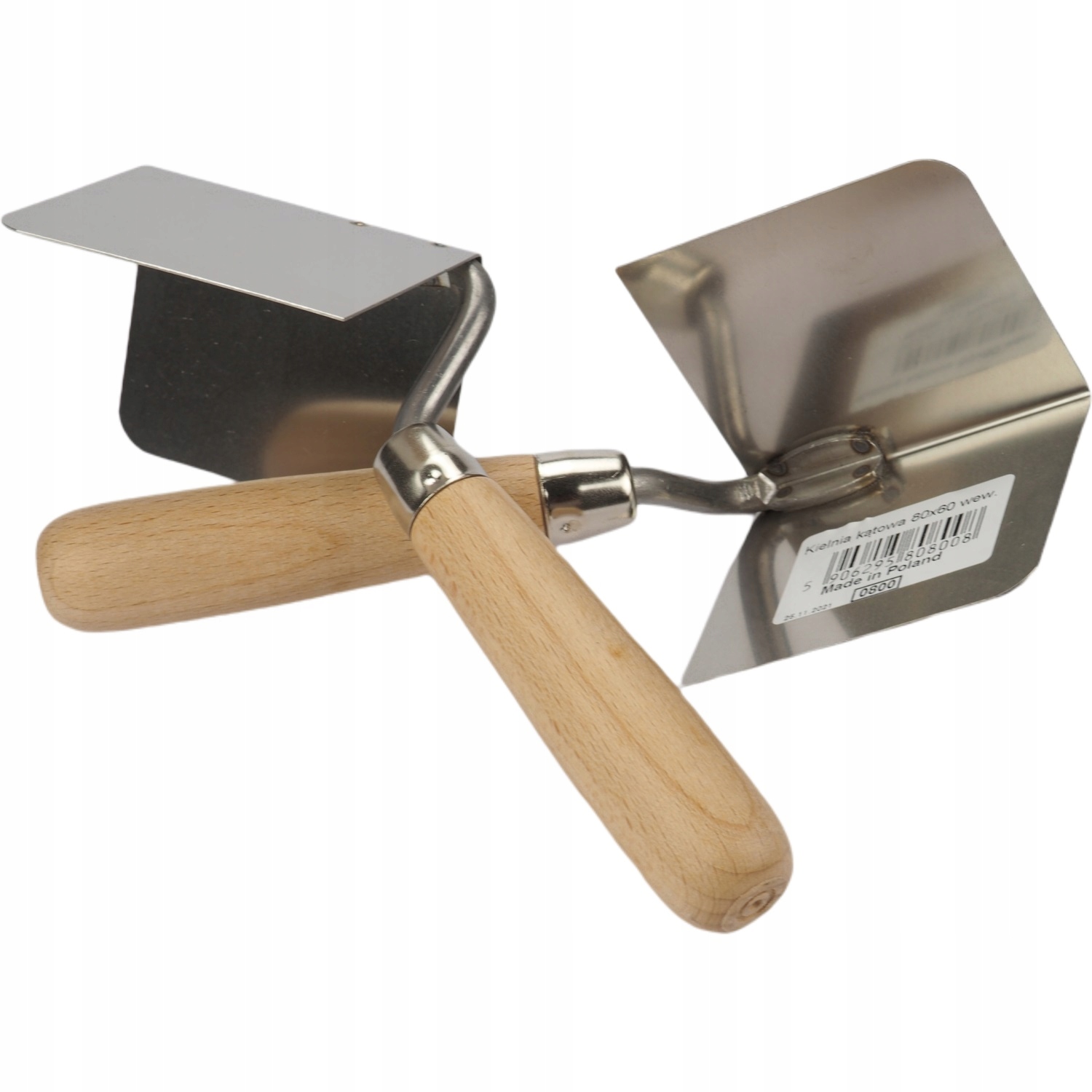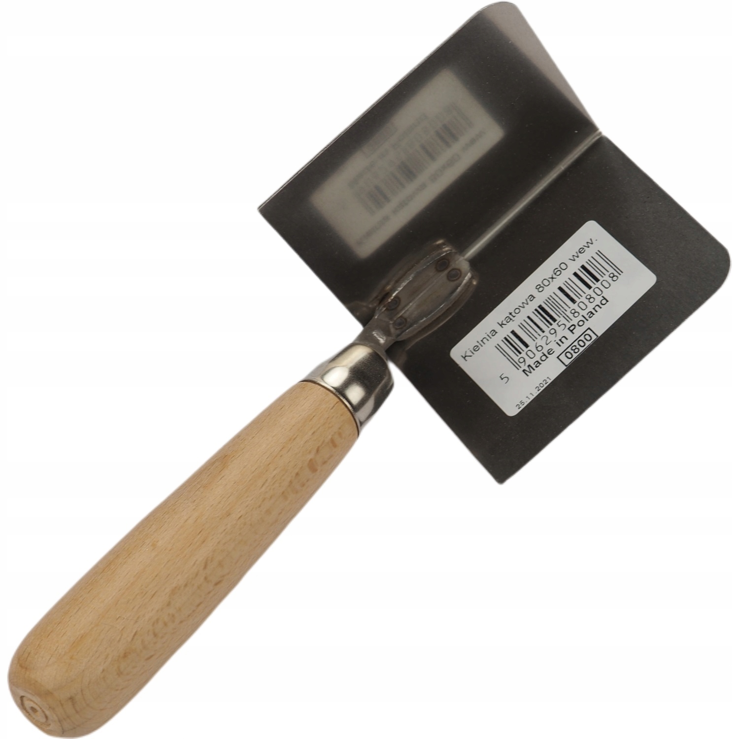Внутрішній кутовий шпатель виготовлено з нержавіючої сталі та має традиційну точену дерев’яну ручку.