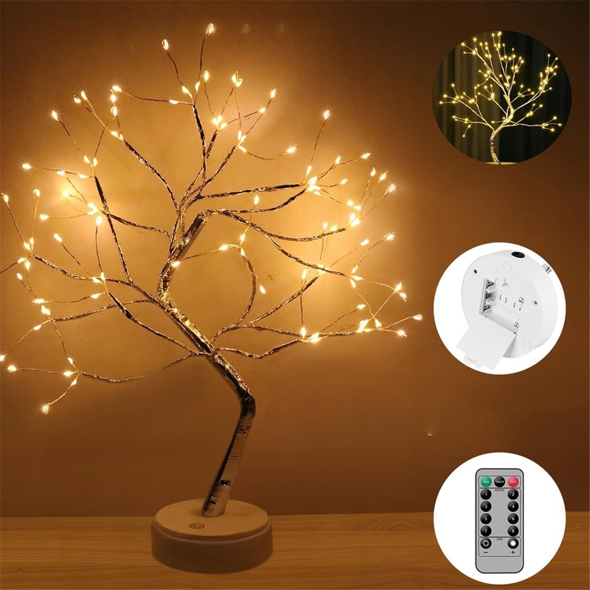 ✔️✔️✔️【Легко встановити】:Декоративні світлодіодні ліхтарі включають світлодіодне дерево, основу та кабель USB. Щоб використовувати, просто підключіть світлодіодну ялинку до розетки та під’єднайте USB-кабель до основи, щоб живити її, або вставте 3 батареї типу АА у роз’єм (батарейки не входять), щоб перетворити її на бездротову настільну лампу.