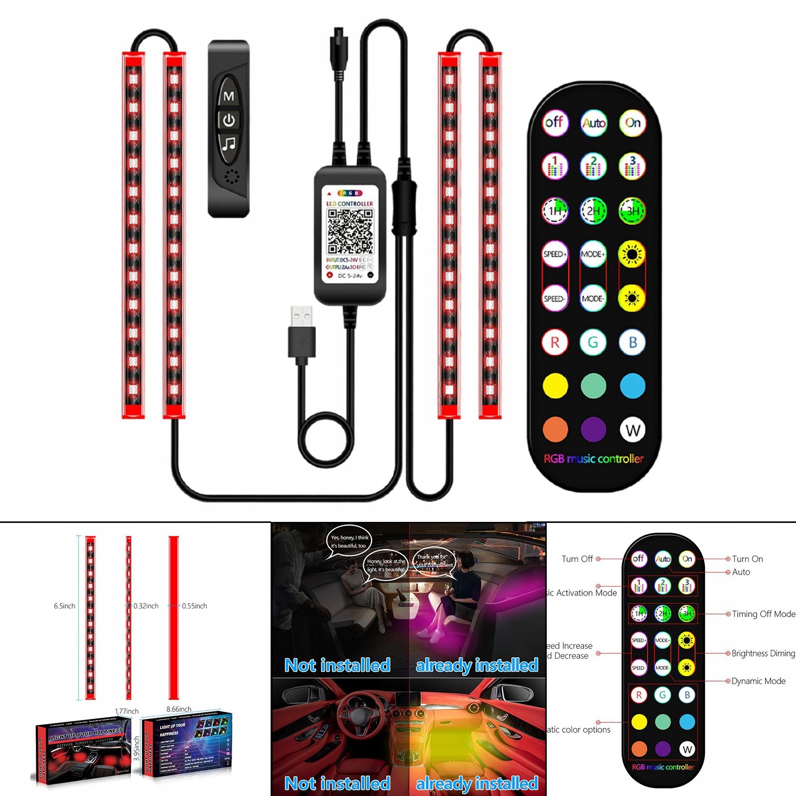 Внутрішні вогні автомобіля RGB Decoration Wireless 8 USB -секція