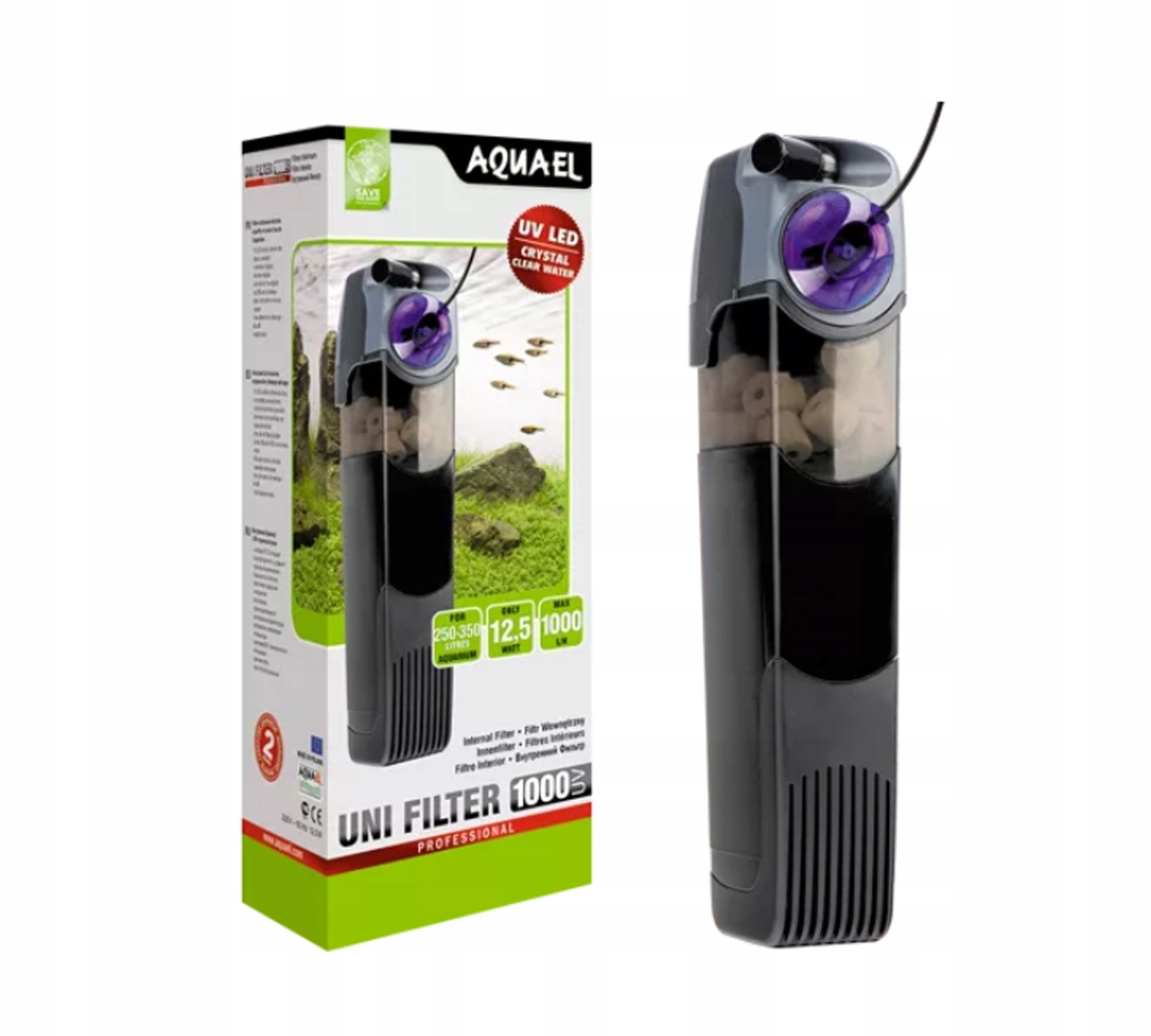 Внутрішній фільтр UNIFILTER 1000 УФ має ультрафіолетові світлодіоди. УФ -стерилізація води проводиться на основі викриття водоростей, бактерій або паразитів до ультрафіолетового світла. Вода протікає через фільтр, ультрафіолетове випромінювання вбиває бактерії та інші патогенні організми та водорості, які клацають грудочками і зупиняються, вилучені з води вставкою фільтру. У той же час, причини більшості захворювань усуваються, таким чином, не дозволяючи рецидиву та їх множення. УФ -світлодіоди можна увімкнути або вимкнути незалежно від операції фільтра.
