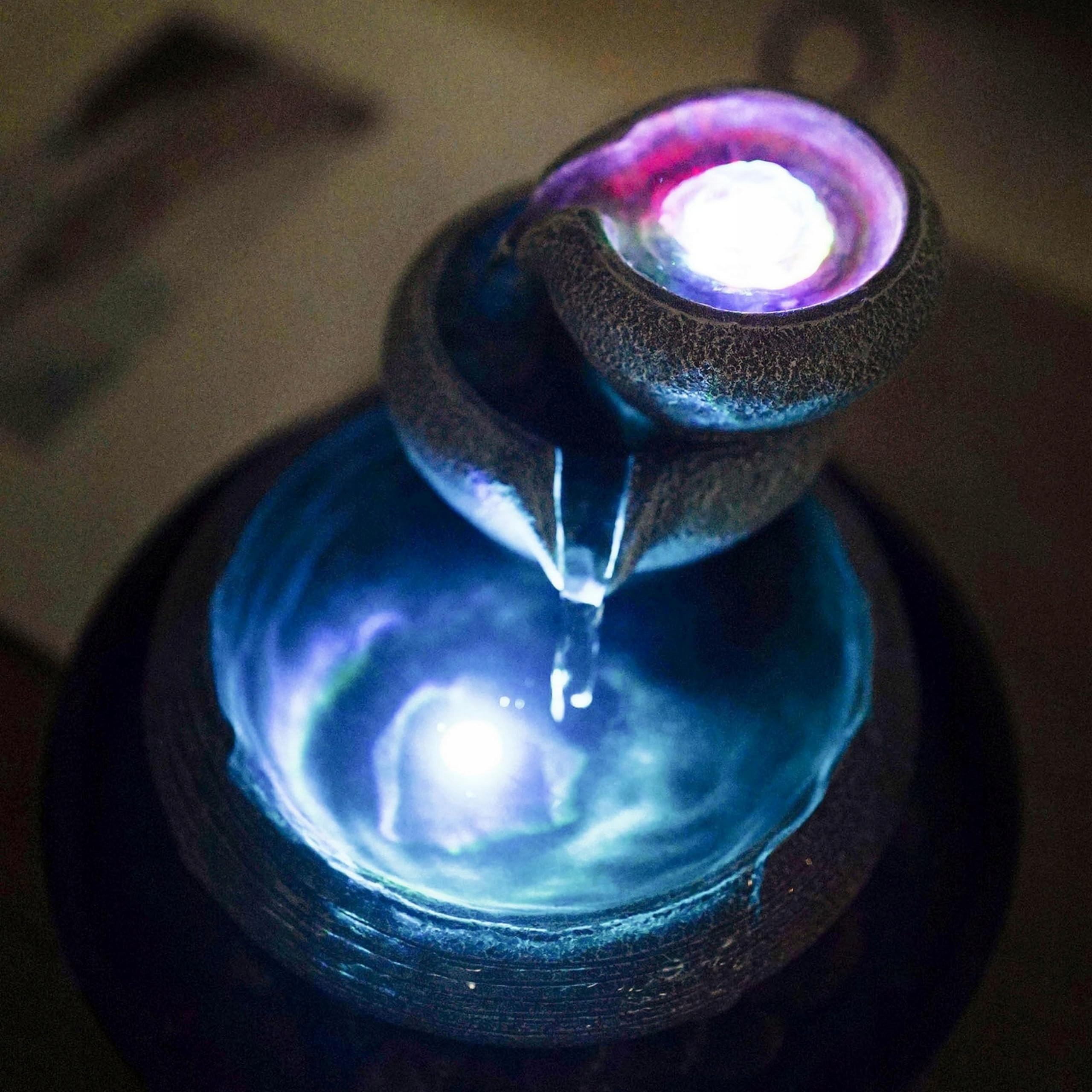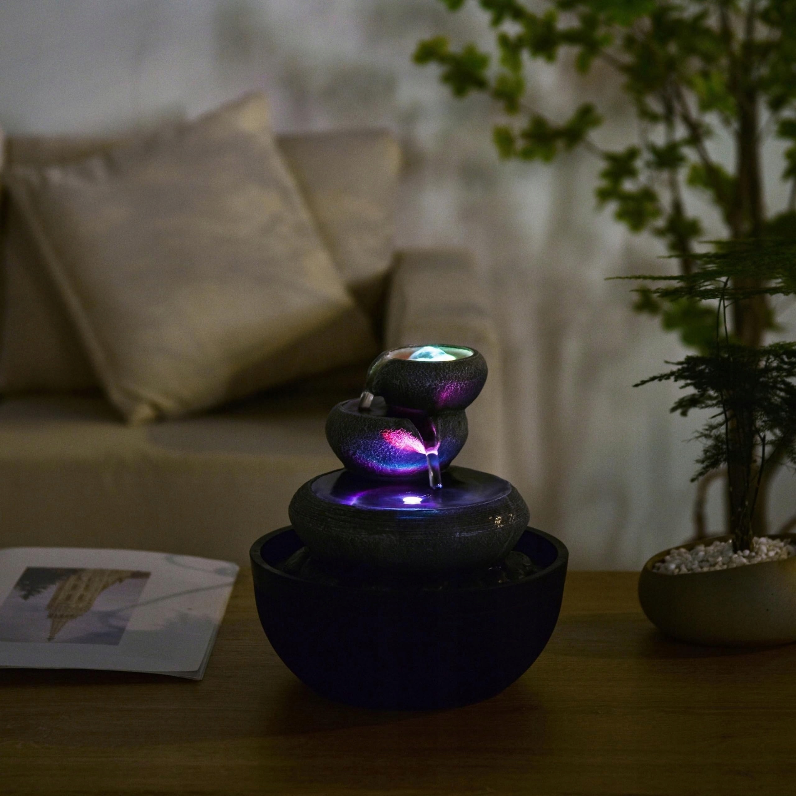 Внутрішній фонтан водоспад 3 Рівні Банові Ефект Натуральний камінь Барвисті світлодіоди, дзен та стильне оздоблення інтер'єру, фонтан столу, унікальна ідея подарунка, висота 21 см - geelong