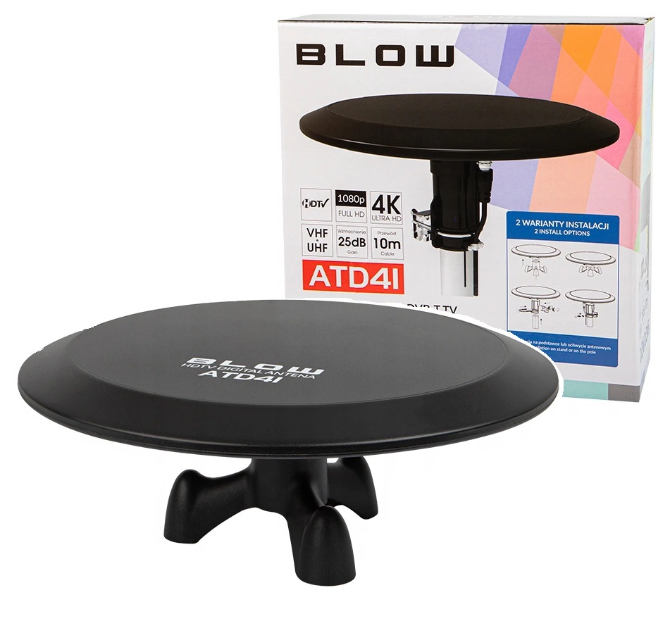 Активна HDTV антена з підсиленням 25 дБ із підтримкою стандартів FullHD і 4K UltraHD, призначена для встановлення як у приміщенні, так і на вулиці. Він забезпечує прийом діапазону VHF + UHF, цифрового ефірного телевізійного сигналу DVB-T / DVB-T2 і цифрового DAB-радіо, а також FM-радіо. Антена має кабель довжиною 10 м з антенним штекером і USB і може бути встановлена двома способами (на підставку або тримач антени).