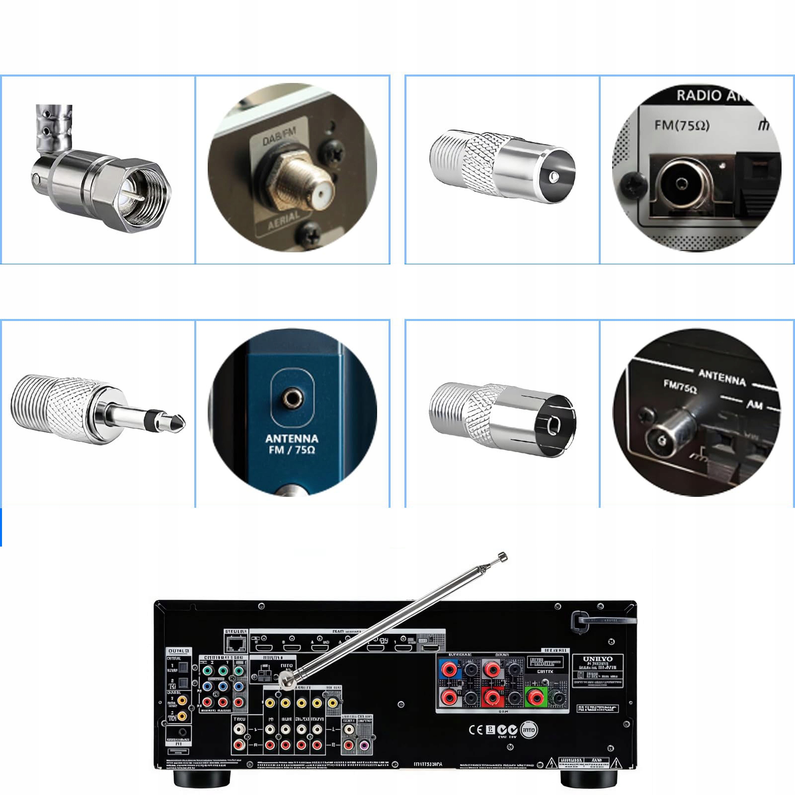 【Універсальна сумісність】Набір включає 76 см телескопічну радіоантену з роз’ємом F-male і три адаптери (PAL male, PAL female і 3,5 мм інтерфейс), що забезпечує сумісність із широким спектром пристроїв.