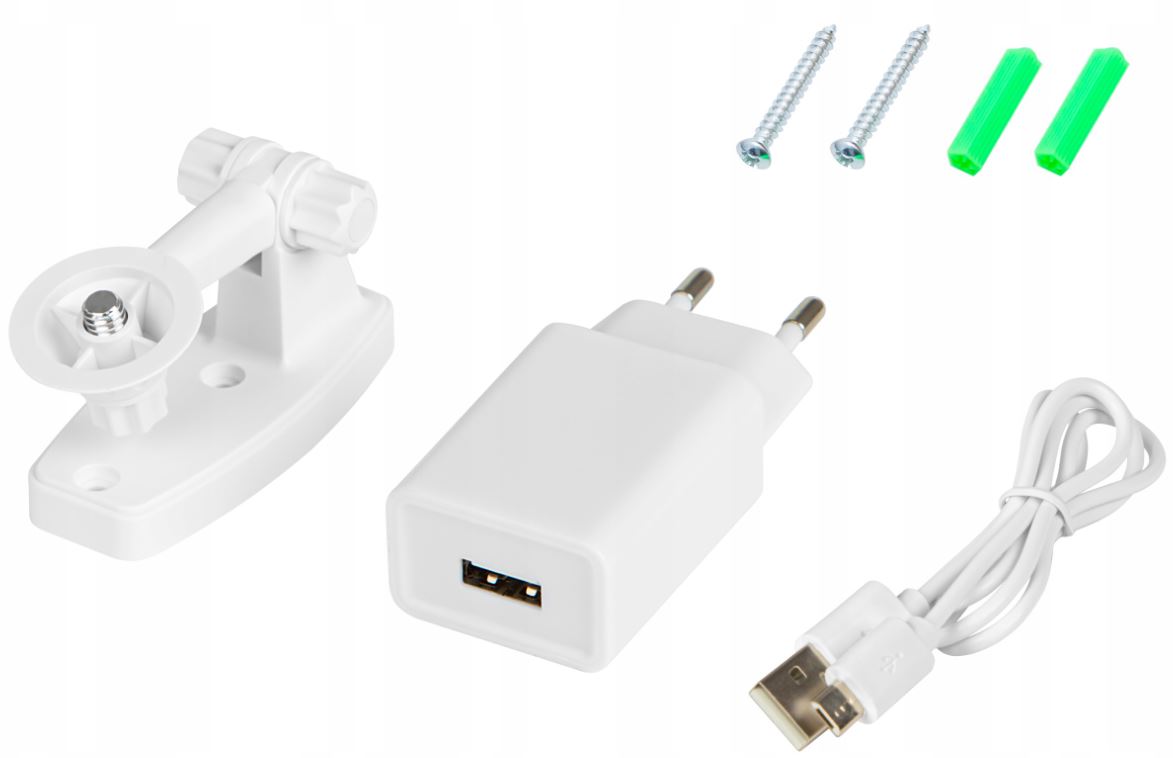 Нова камера Smart Wi-Fi PTZ BLOW H265, вбудована антена WiFi Джерело живлення 230 В з адаптером Мережевий кабель WAN / LAN Монтажні шпильки з гвинтами пригвинчується до стіни, захист кабельного з’єднання, посібник користувача польською мовою, оригінальна упаковка від серії CAM BLOW, спеціальне джерело живлення DC 5V / 2A, micro USB - USB-кабель у комплекті з пристроєм