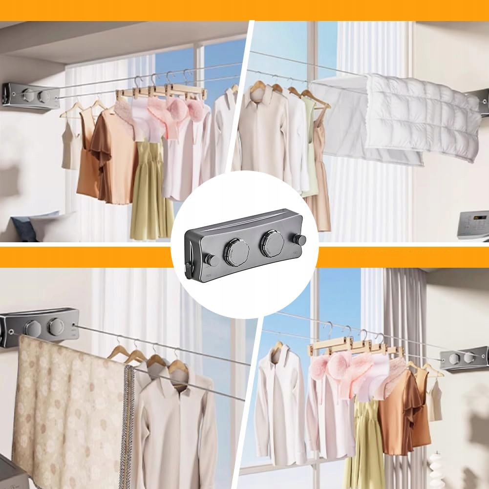 ➡️➡️Більша місткість:Висувна мотузка для білизни для зовнішнього й внутрішнього використання оснащена водонепроникною, стійкою до іржі та високотемпературною мотузкою для прання з нержавіючої сталі 304 із подвійним шнурком. Одна сушильна лінія може витримувати до 20 кг/44 фунтів і подовжується до 5,1 м, тож вам не доведеться турбуватися про брак місця для сушіння та збирання одягу.