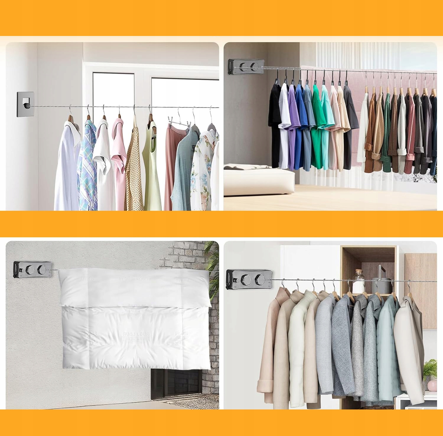 ➡️➡️Широке застосування:Довговічна висувна нитка для прання всередині та на вулиці підходить для використання всередині та на вулиці, на балконах, ванних кімнатах, пральнях, спальнях, готельних приміщеннях, басейнах та патіо. Використовуйте клей для монтажу гладкої керамічної плитки та мармуру, скла або металу, масивної деревини. Штукатурку, шпалери та гіпсокартон можна монтувати лише шляхом свердління отворів.