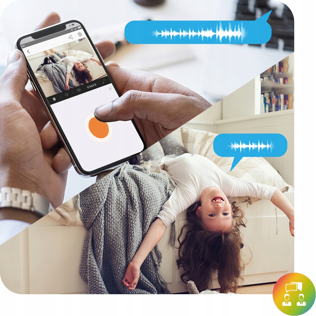 Різноманітні аудіо функції забезпечуються динаміком і мікрофоном, вбудованими у пристрій, що навіть дозволяє двосторонній зв'язок між вами та вашими гостями.