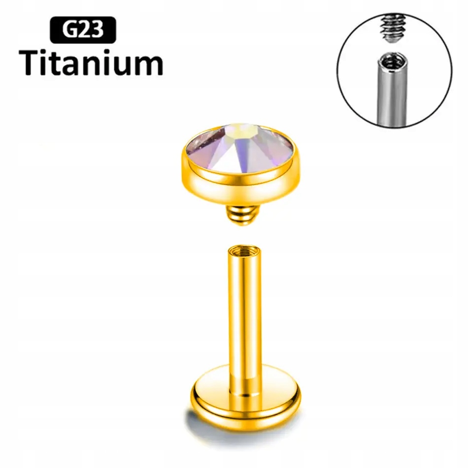 Внутрішня різьба 1,2/8/3 титанового золотого лабрета з переливаючимся кубічним цирконієм