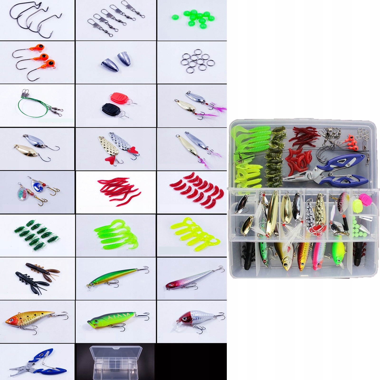 Виріб містить цілих 101 елемент, які полегшують риболовлю. У набір входять: воблери, твістери, штучні приманки, ластівки, поводки, спеціалізовані ножиці та багато інших компонентів. Ви 100% нічого не пропустите!