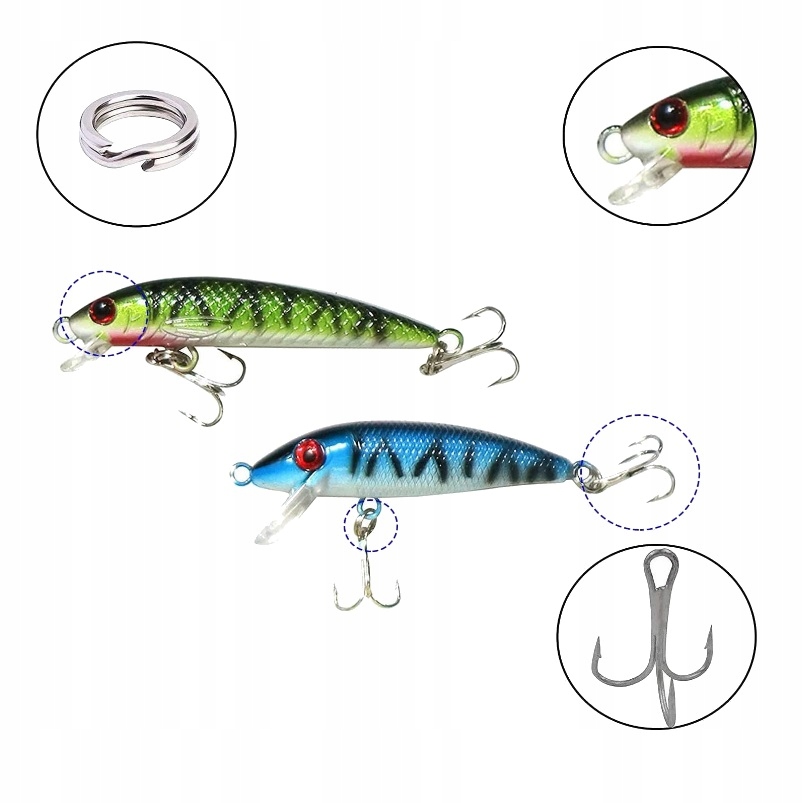 ✔️ Механічно заточені тройні гачки добре прилипають і полегшують риболовлю
