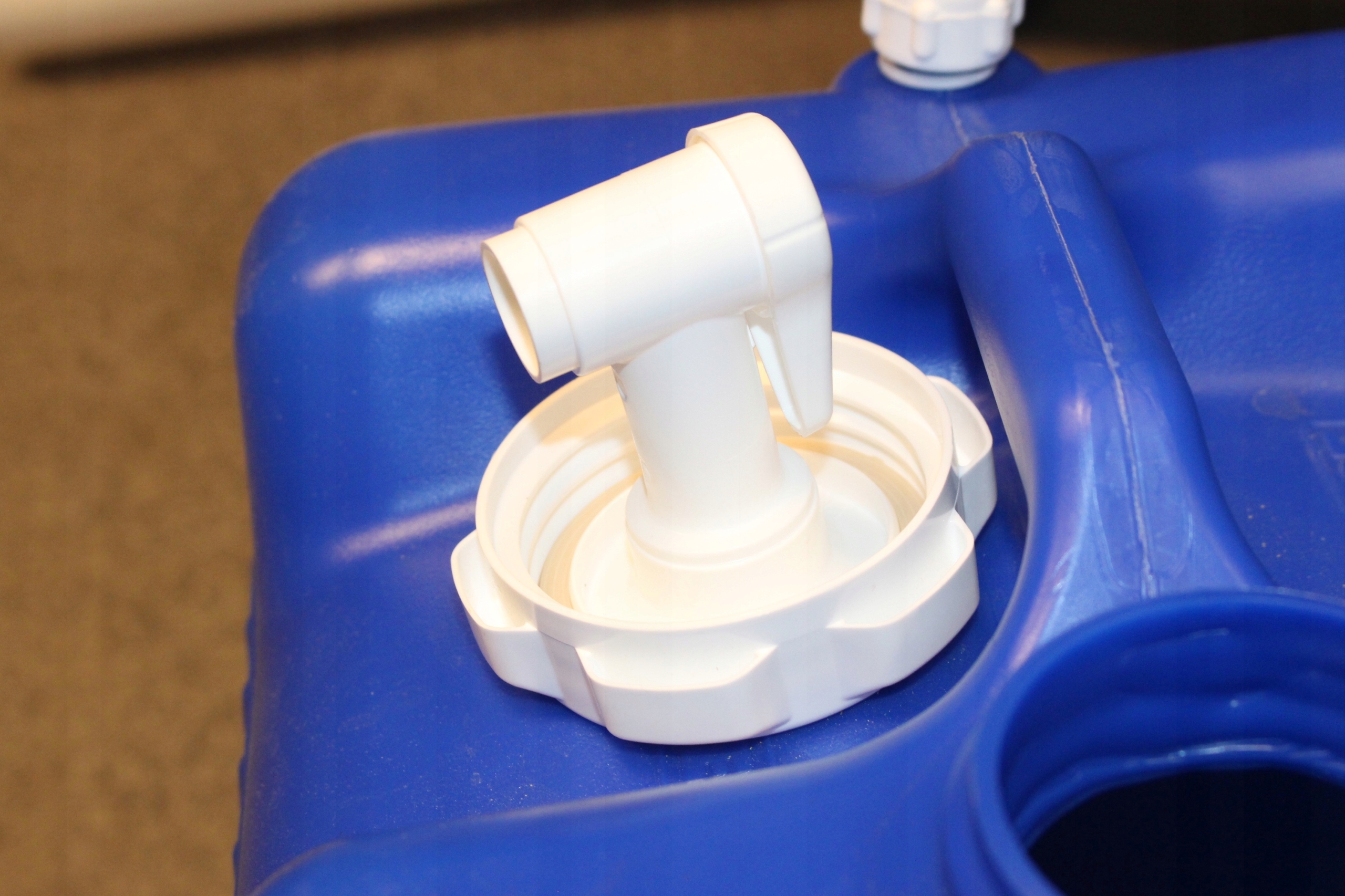 - Ця каністра має водопровідний кран і її можна штабелювати для компактного зберігання.